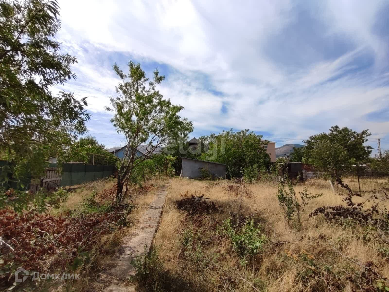 На территории два плодоносящих грецких ореха, миндаль, виноград. Земля ухожена, удобрена, без камней. Дорожка залита бетоном.