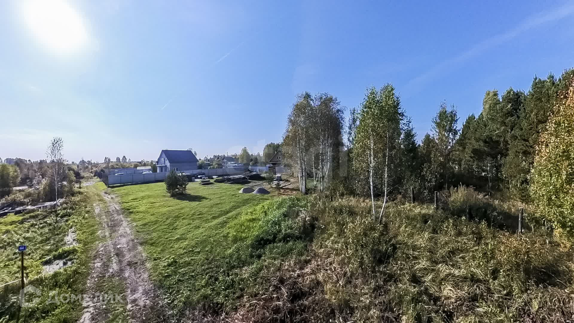 Участок в конце улицы с выходом в лесополосу, растут высокие деревья, на самом участке есть небольшие сосны, место высокое, не топит