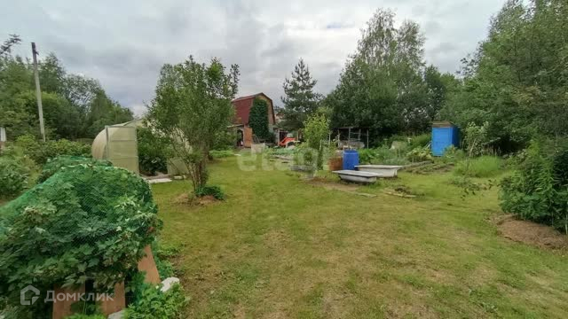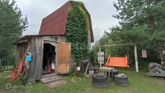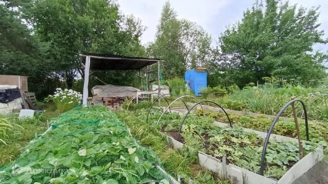 На дачном участке находится дачный щитовой двухэтажный домик площадью 20 кв.м., качели, колодец, навес, теплица поликарбонат 6 метров, будка от газели для инвентаря, туалет, а также посажены яблони, смородина, грядки, так же имеются две сарайки и картофельник.