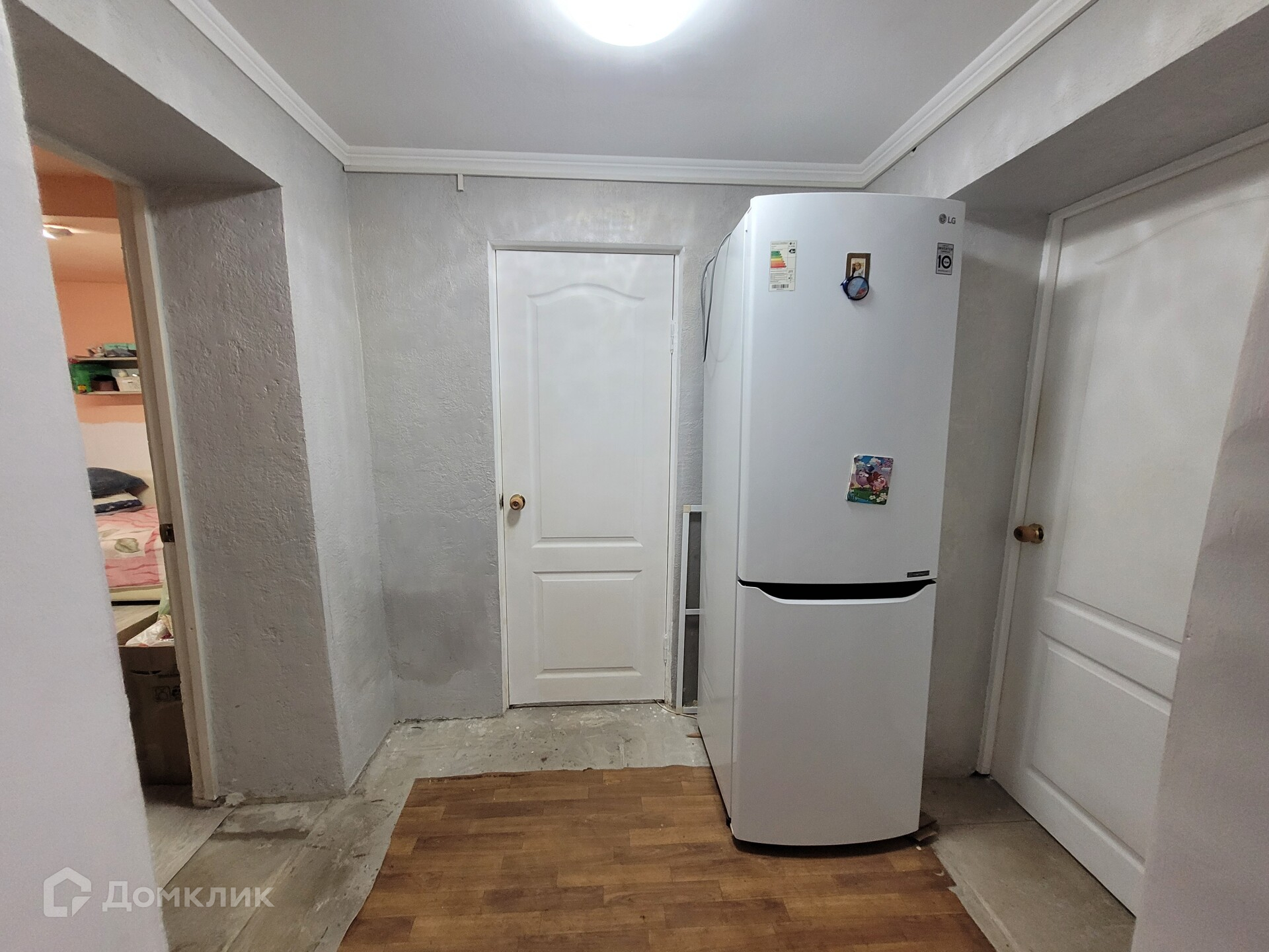Удобная планировка: прихожая, коридор, две комнаты (на данный момент из одной комнаты сделали гардеробную), санузел совместный.