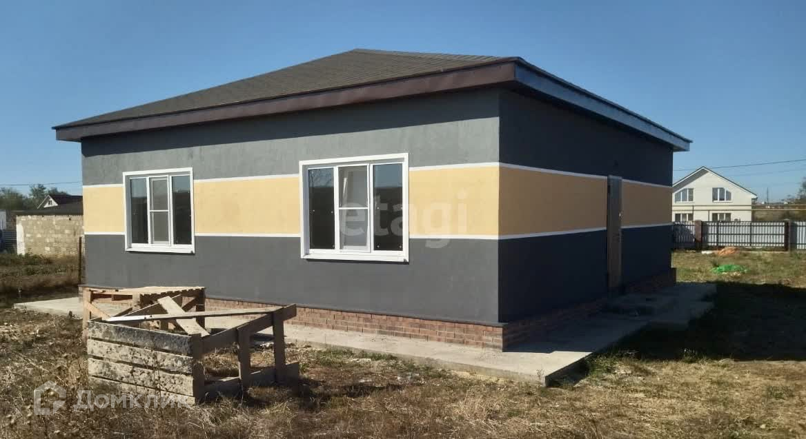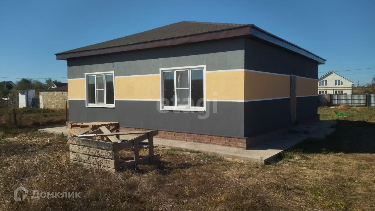 Продается новый дом площадью 84 кв. м. в 10 км. от моря. Дом построен из блока, утеплитель пенополистерол, облицовка - декоративная штукатурка (техника короед). В доме 2 спальни и просторная кухня - гостиная свободной планировки. С/у совмещенный. Высота потолков - 3 метра. Дом продаётся в предчистовой отделке: выровнены и оштукатурены стены, на полу - стяжка, смонтированы натяжные потолки, установлены металлопластиковые окна. В дом заведены все коммуникации: газ, электроэнергия, водоснабжение из скважины, канализация - септик. Расположен дом на участке 7 соток.