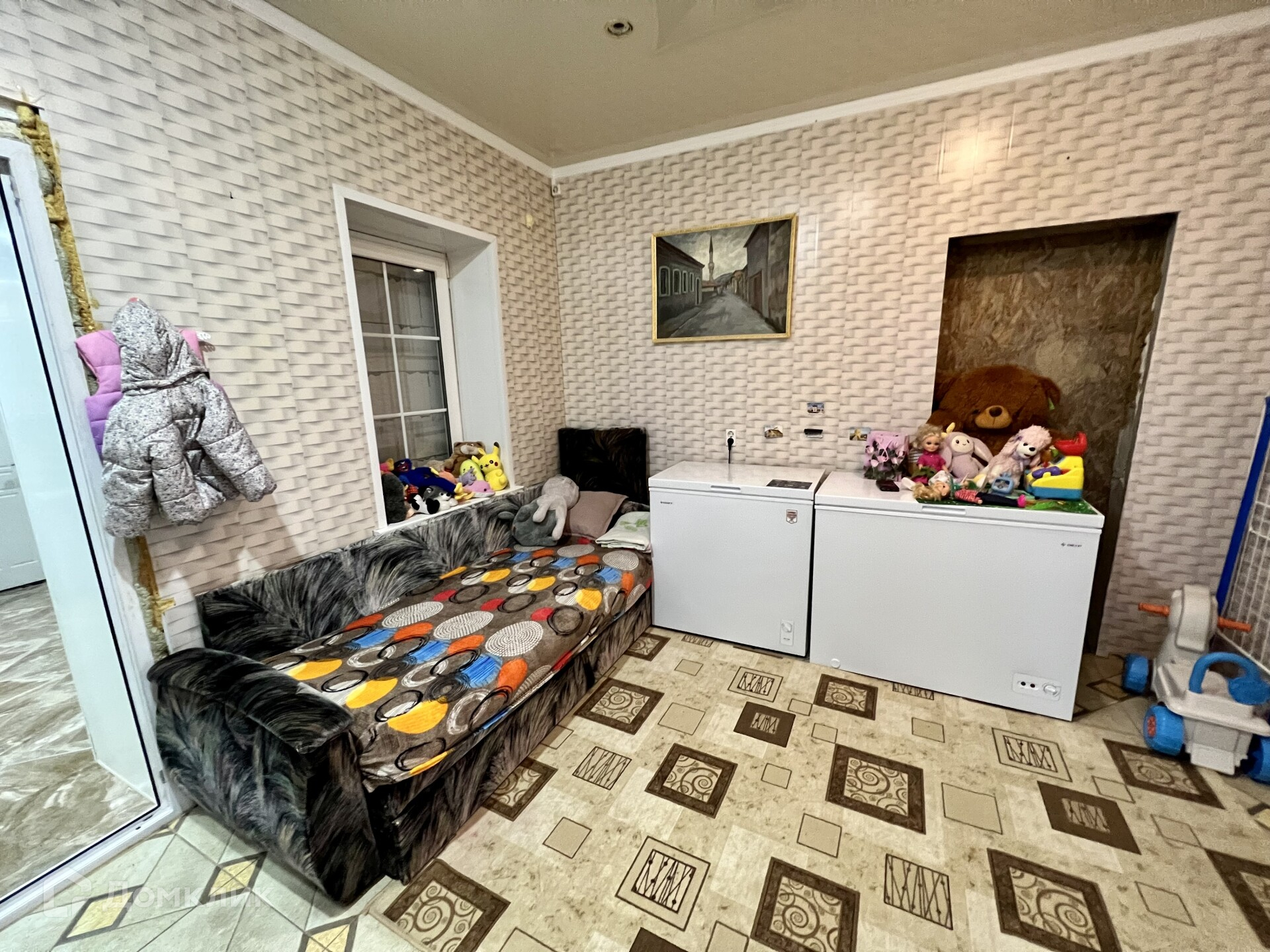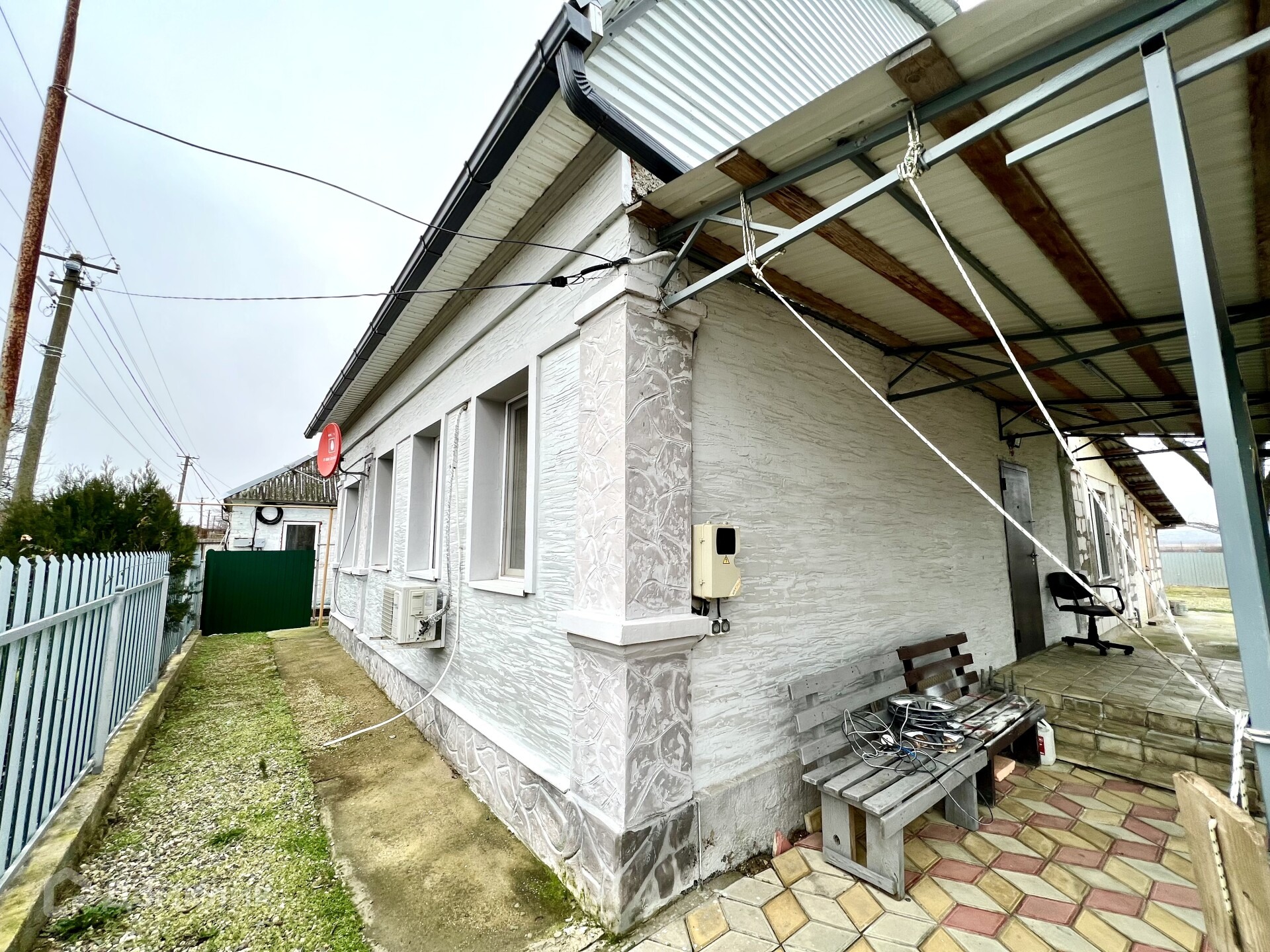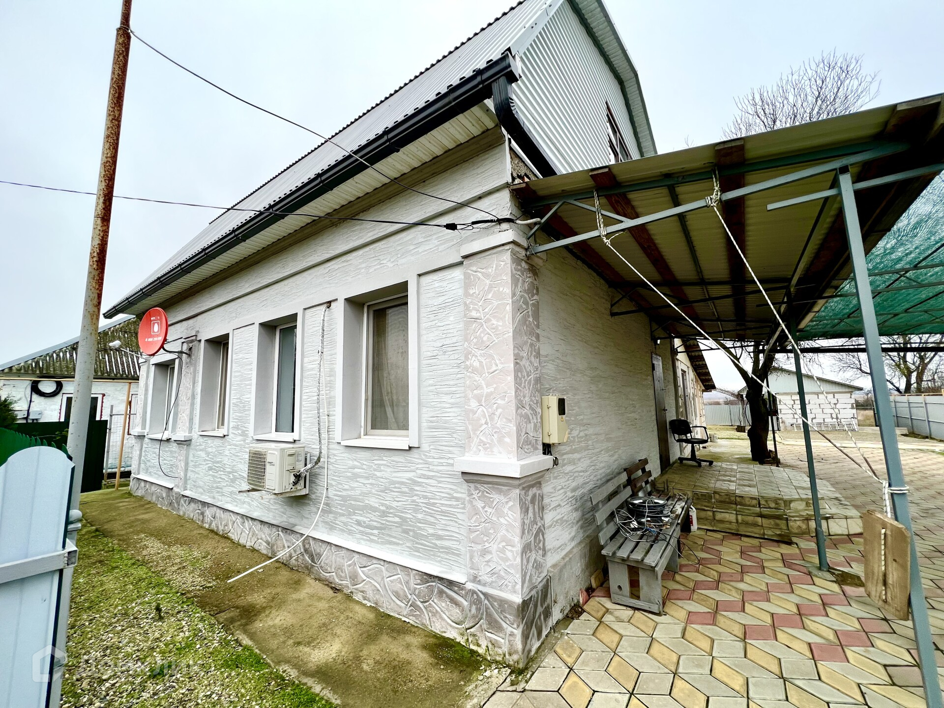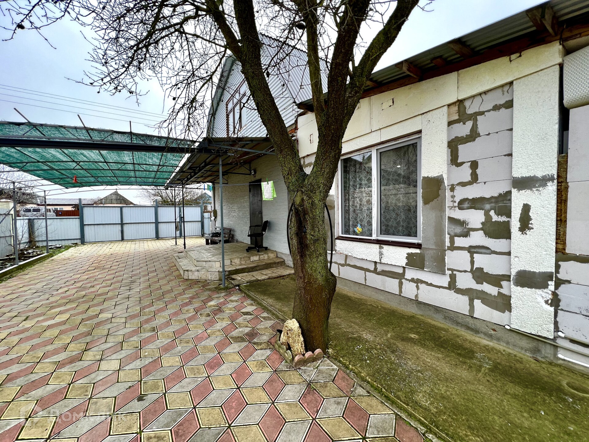 Утепленный мансардный этаж, где можно обустроить еще комнату. Двор выложен плиткой, есть большой навес.