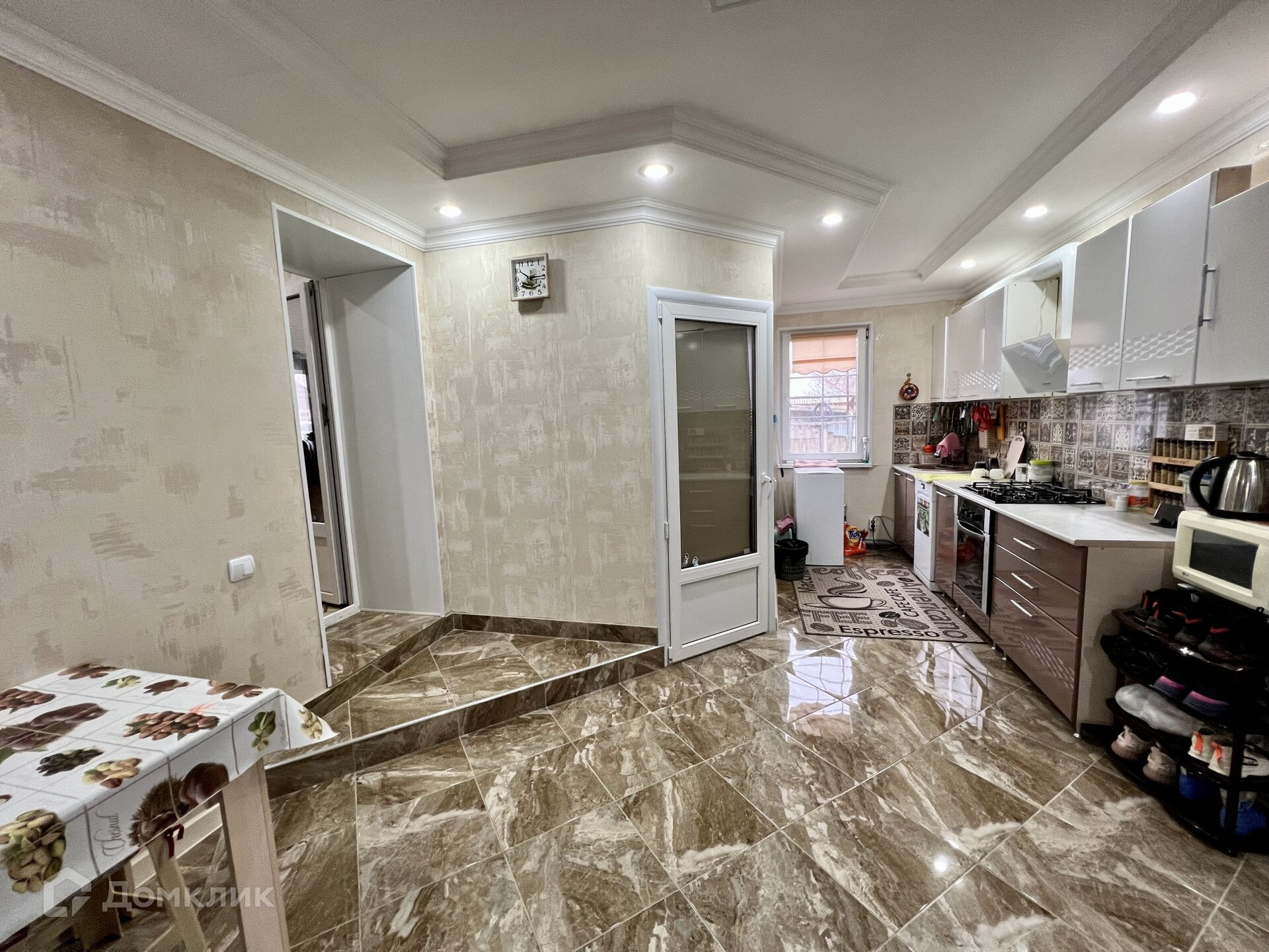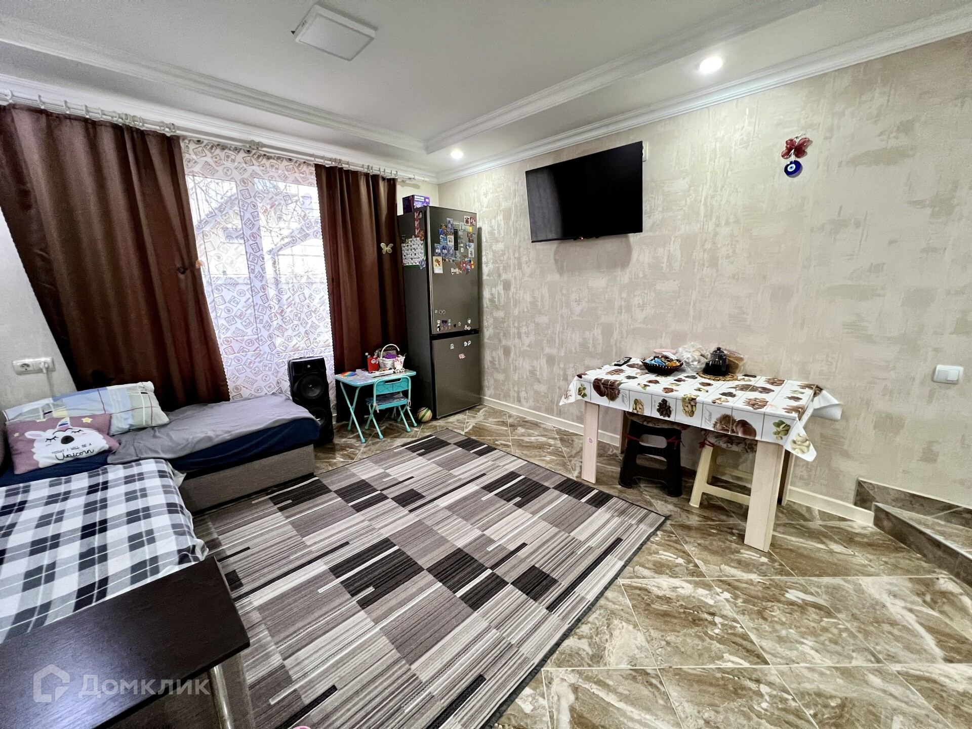 Продается уютный ухоженный дом общей площадью 100 кв.м на земельном участке 17 сот в ст. Ахтанизовская. Дом блочный, обложен кирпичом, отделан структурной штукатуркой.