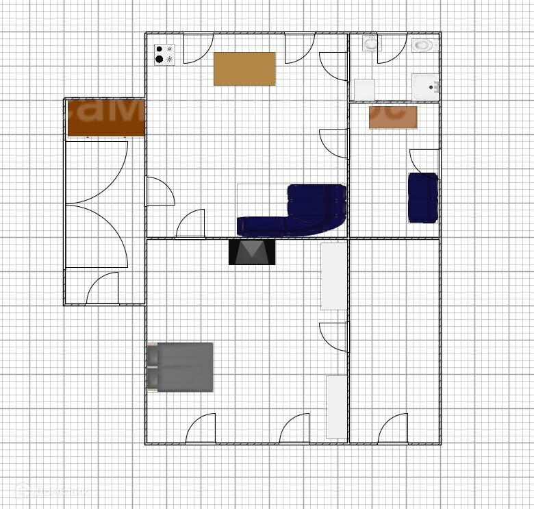 В жилом доме площадью 49.3 кв. метра расположены три комнаты по 14,6 (смежная), 6.2 и 5,1 кв. метра раздельные с высотой 2.75 метра, также кухня-гостинная 13.4 кв. метра, оборудован совмещенный санузел 3,2 кв. метра.