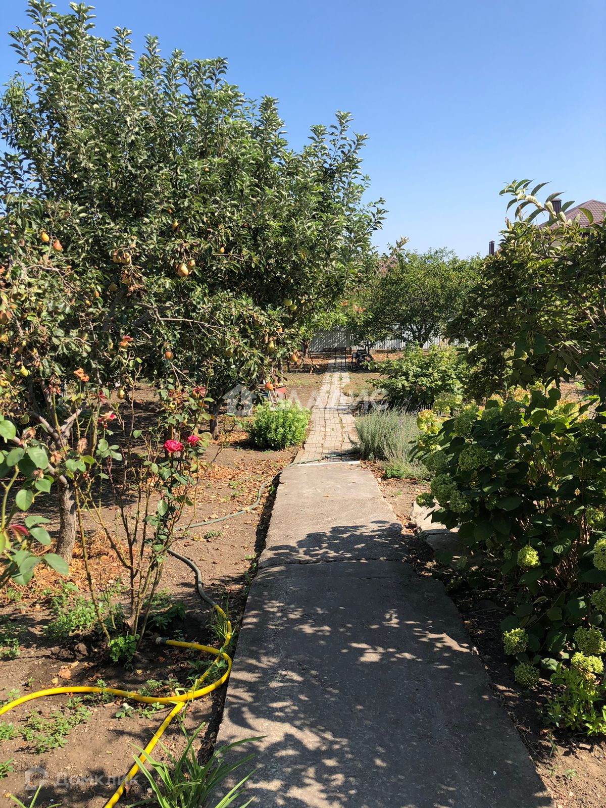 Ухоженный плодоносящий сад, скважина для полива.