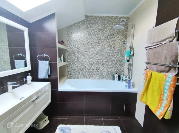 В доме 5 комнат, на втором этаже 3 спальни (в 2х имеются выходы на балконы), 1 санузел ( теплый пол), отдельная постирочно-кладовая комната, есть выход (дверь-лестница) на чердак около 40 м2 ( без отделки)
