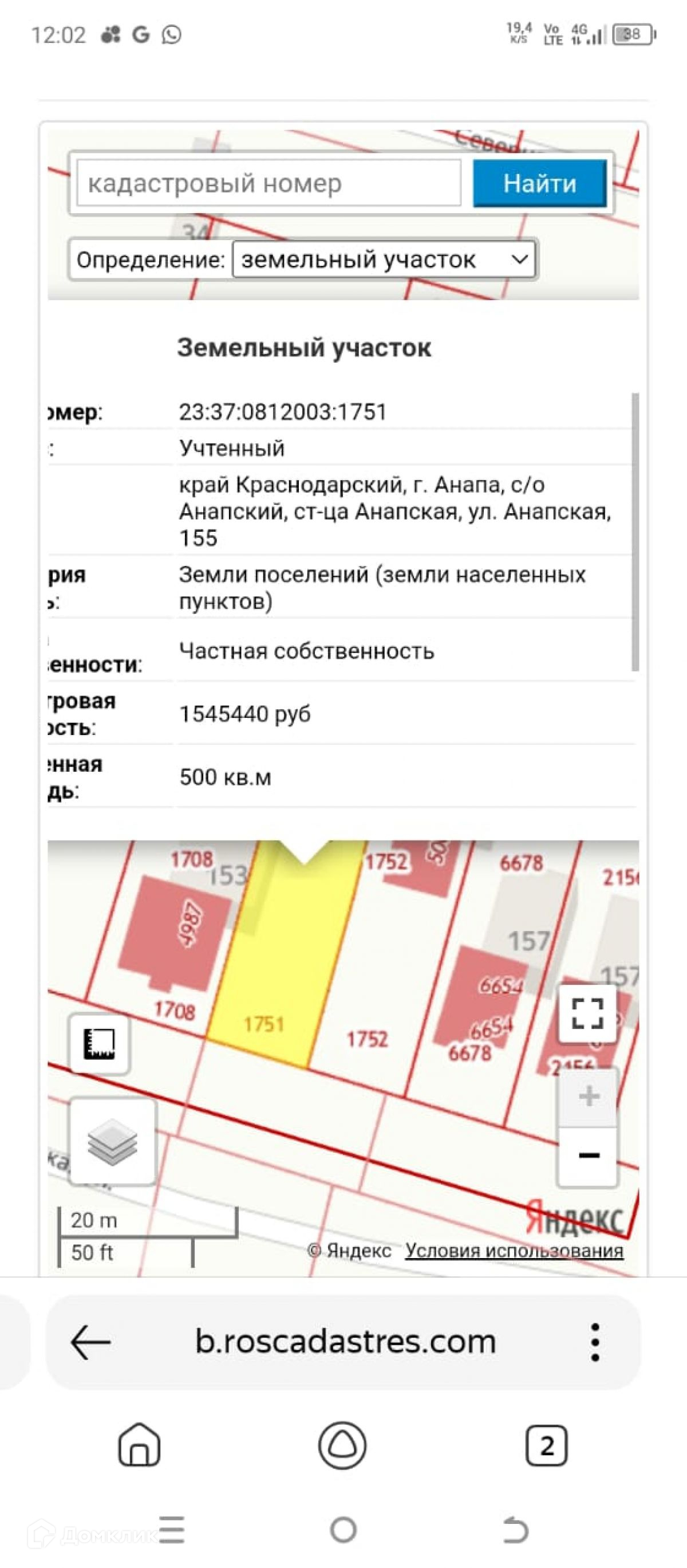 Площадь участка 5 сот.