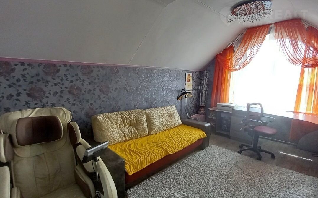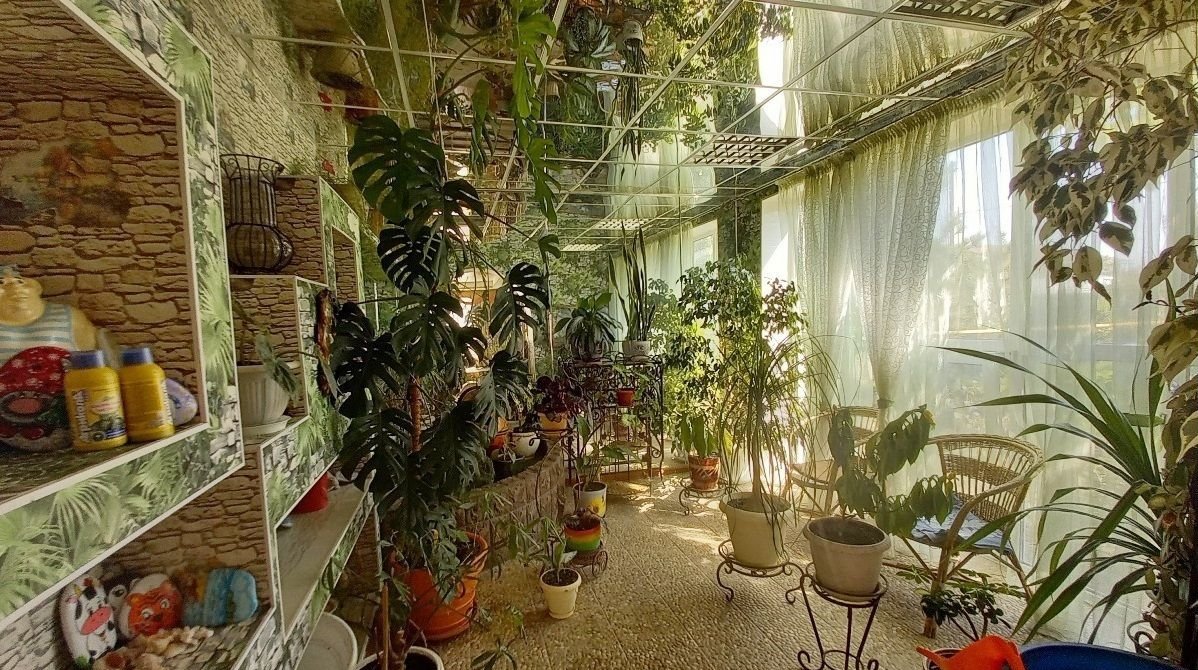 На 1-м этаже расположена гостиная 34,5 кв.м, кухня-столовая 19,4 кв.м, отапливаемая комната 14,4 кв.м (сейчас здесь зимний сад, но можно сделать полноценную жилую комнату или рабочий кабинет), санузел;