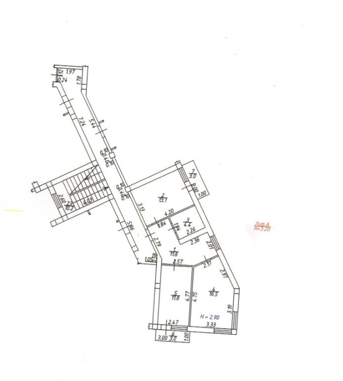Общая площадь 63,4 м2, на 3-м этаже 3-х этажного дома.