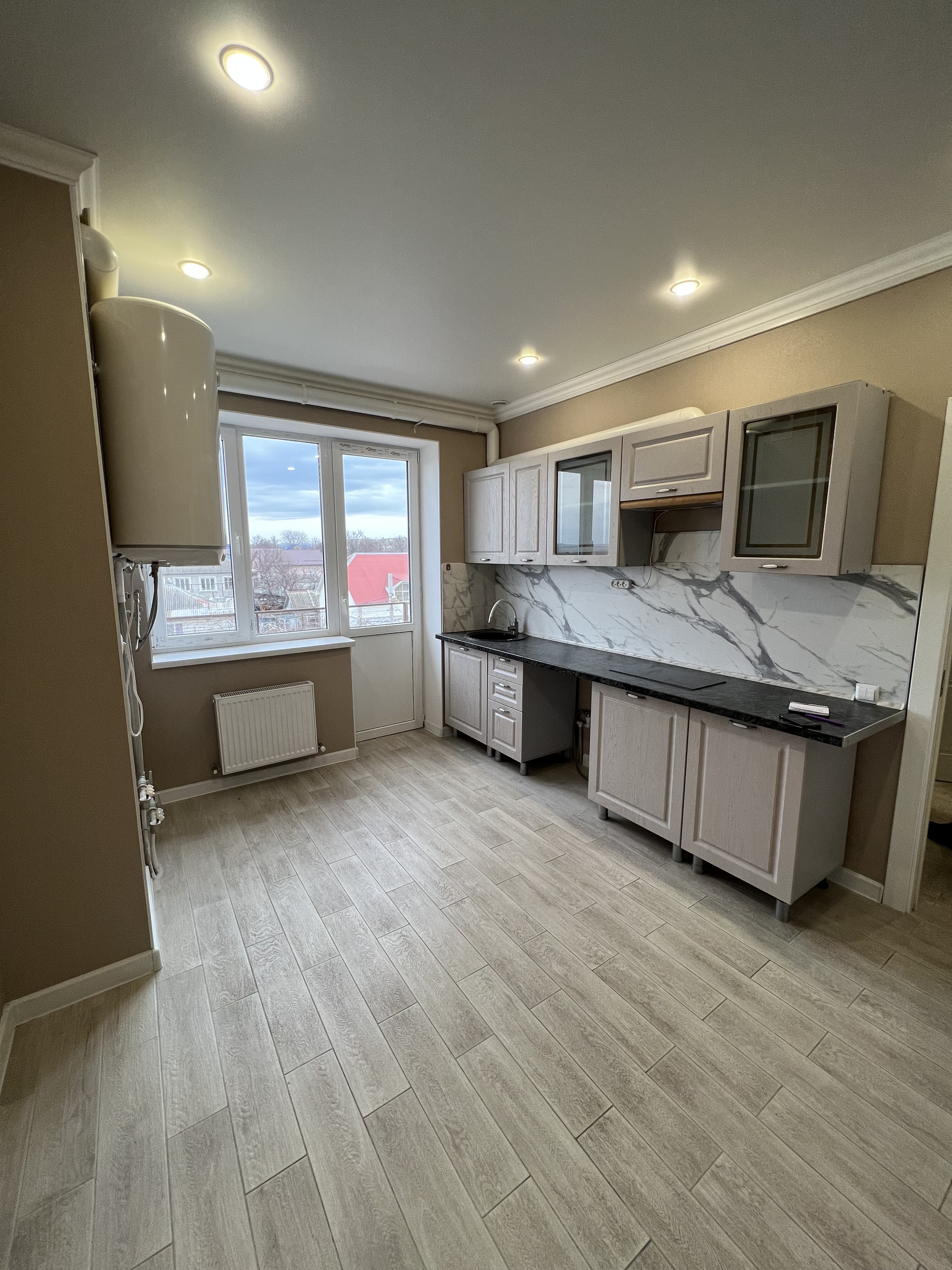 В квартире выполнен современный, качественный ремонт. Установлена встроенная кухня.