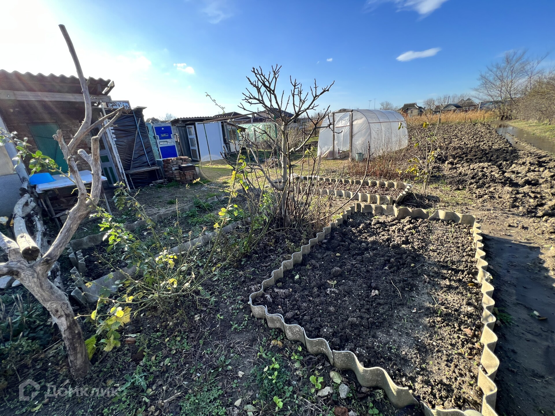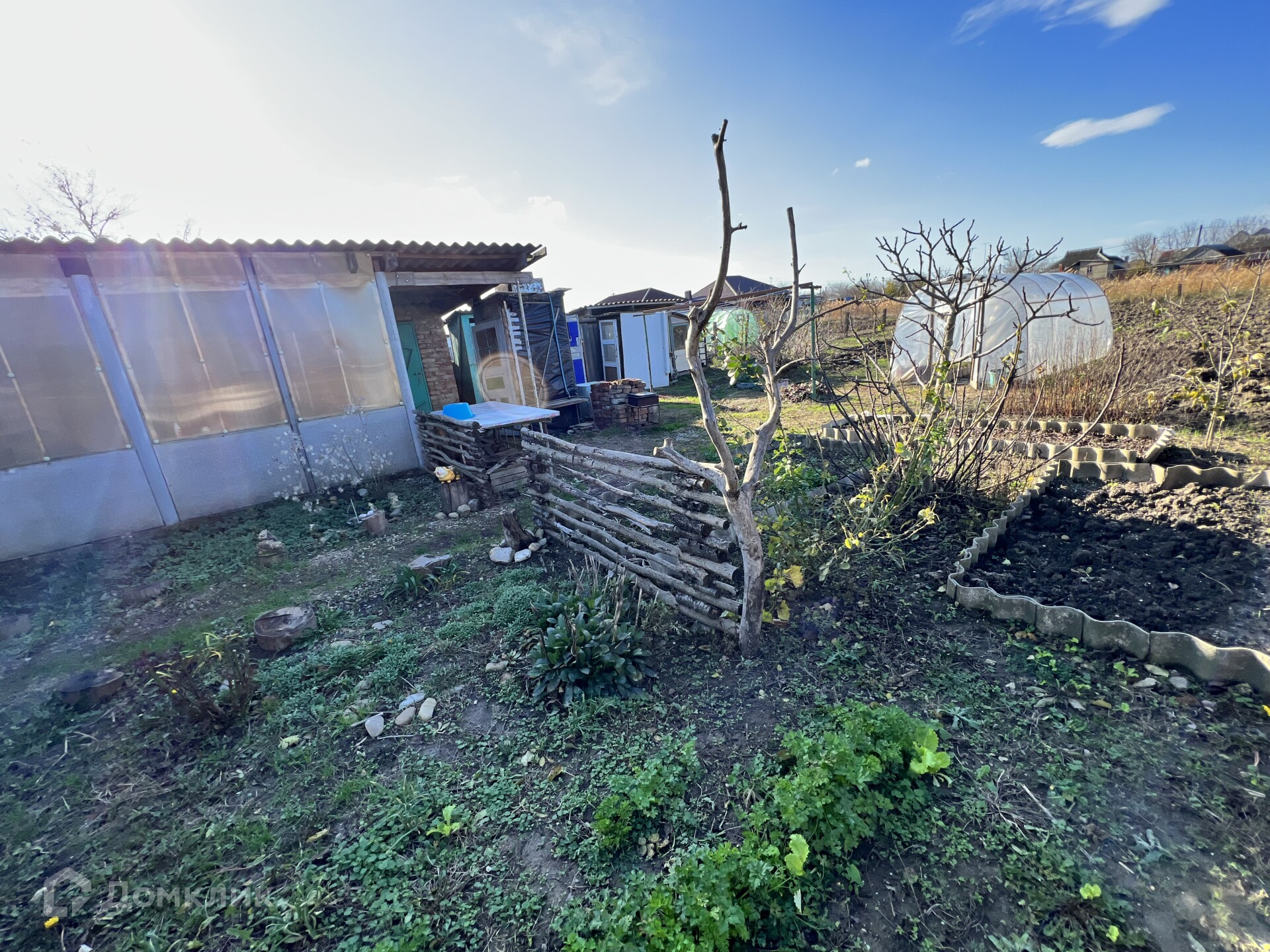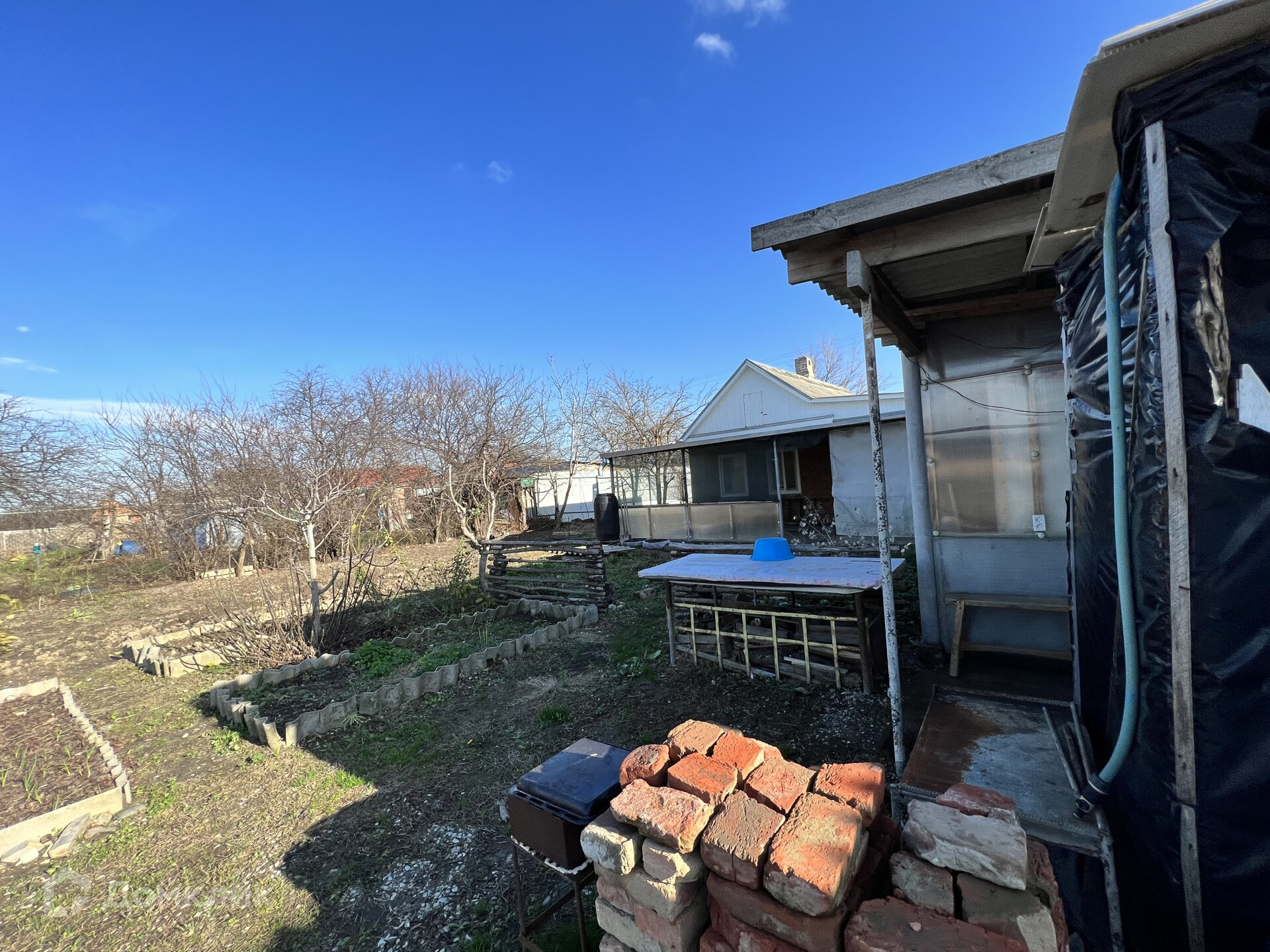 Участок ухоженный. Большой плодоносящий сад: слива, вишня, яблони, алыча, орех, кизил, фундук, малина. несколько сортов очень вкусной клубники. Есть теплица.