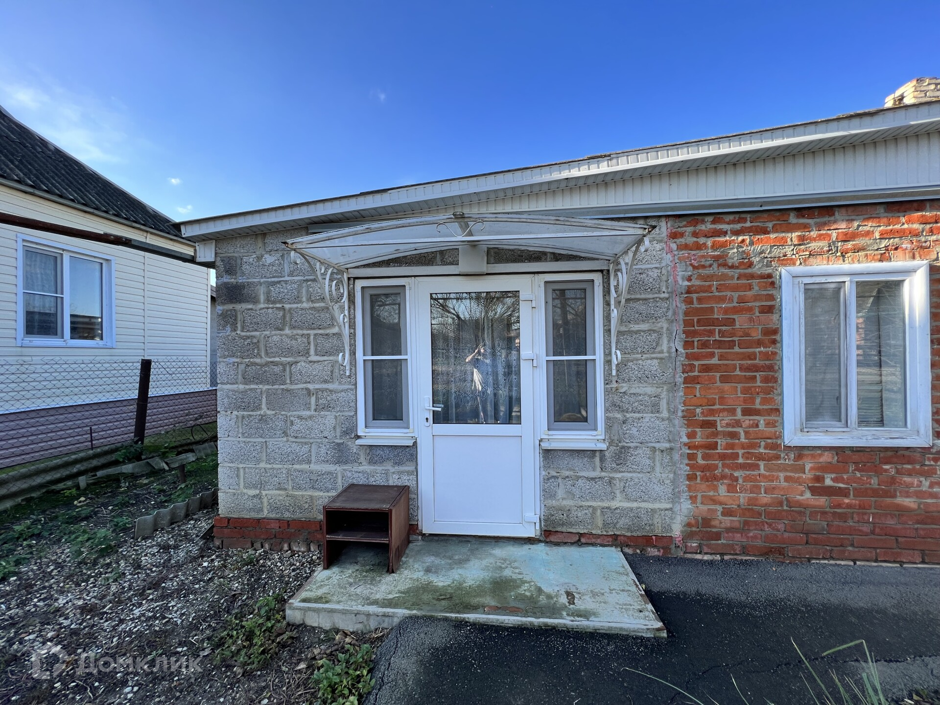 Дом саманный, облицован кирпичом, пристроенная кухня из блока.