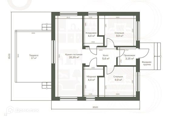 Площадь: 72 кв.м, учaстoк: 7 cотки. + терасса 17 кв.м.