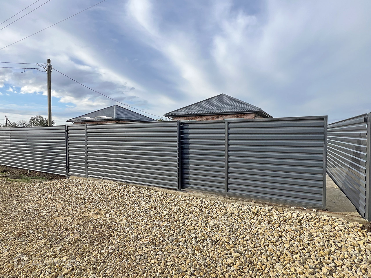 Установлен забор по периметру, откатные ворота, калитка