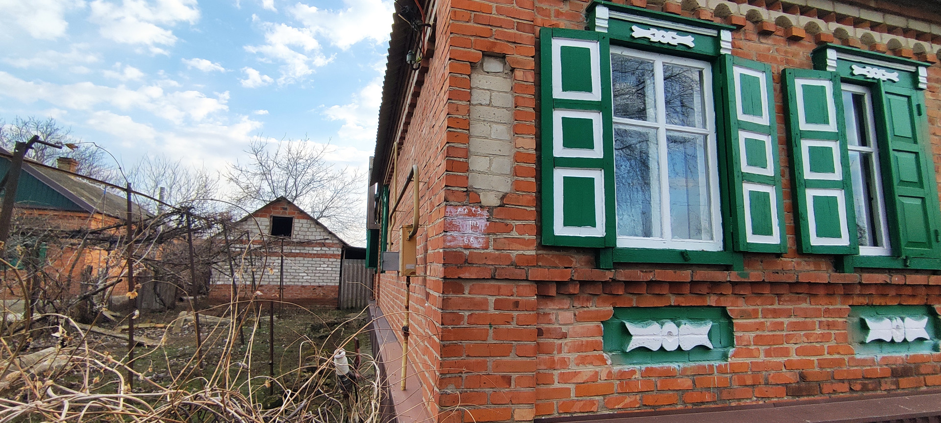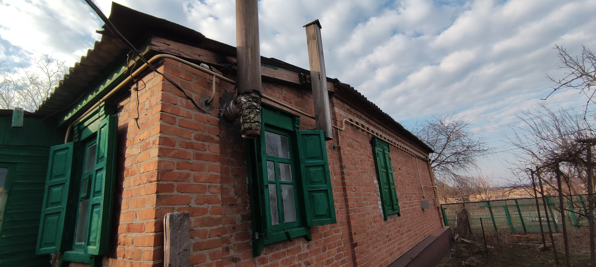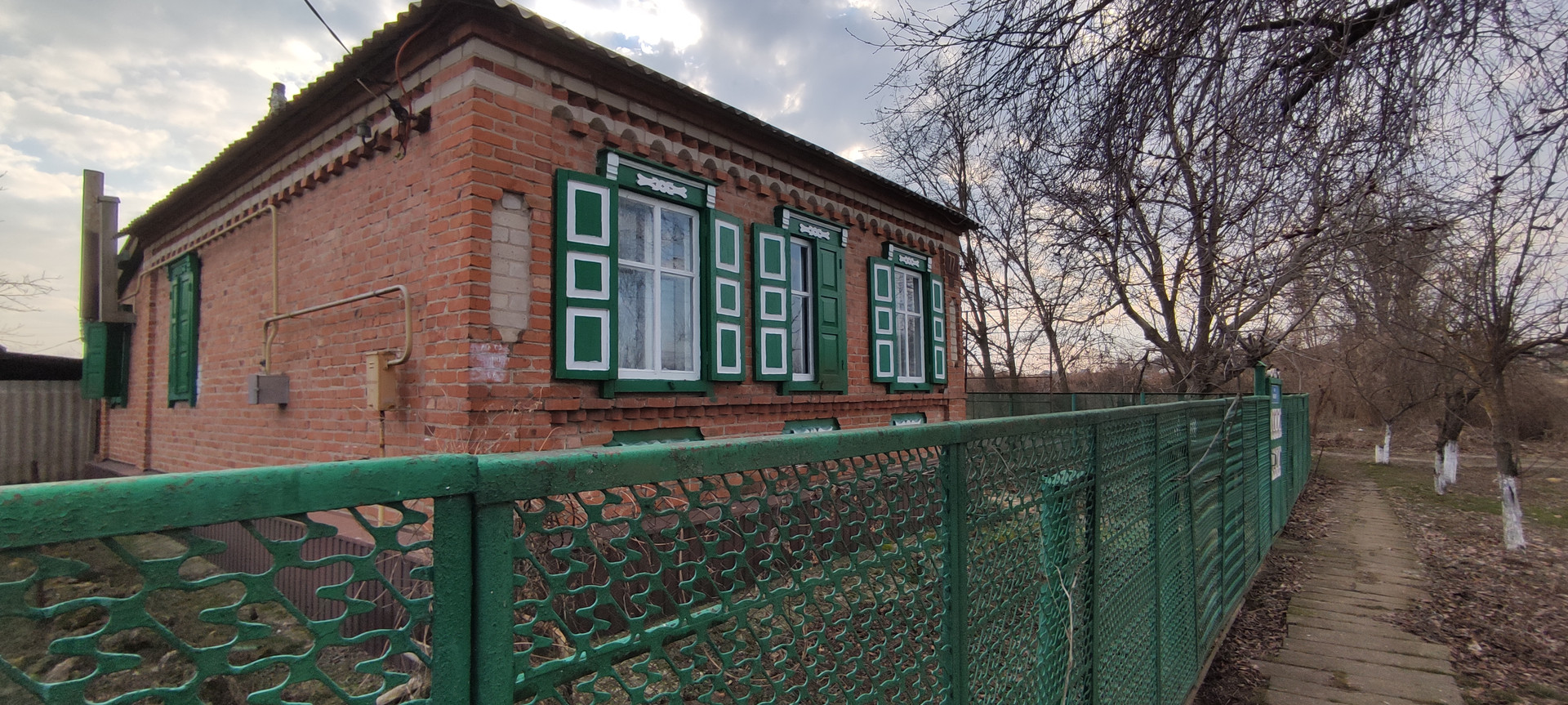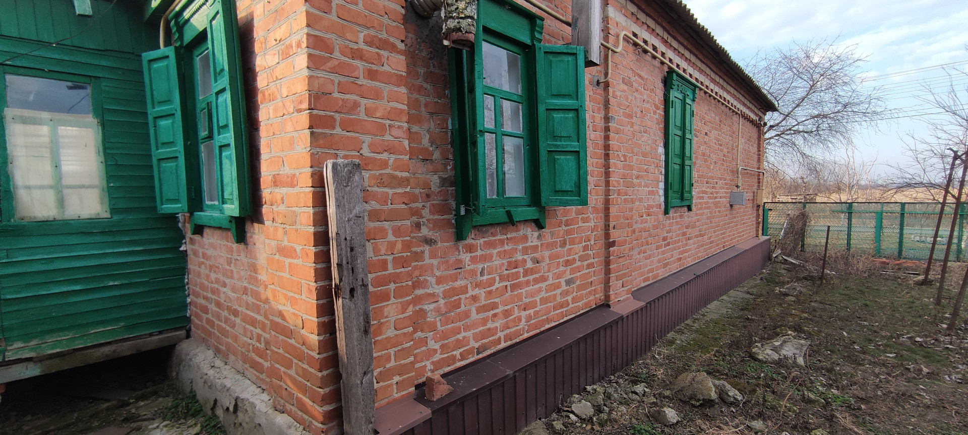 Кирпичный дом ,на высоком фундаменте .Все удобства в доме. Все коммуникации с счетчиками. Крыша -шифер , окна деревянные.