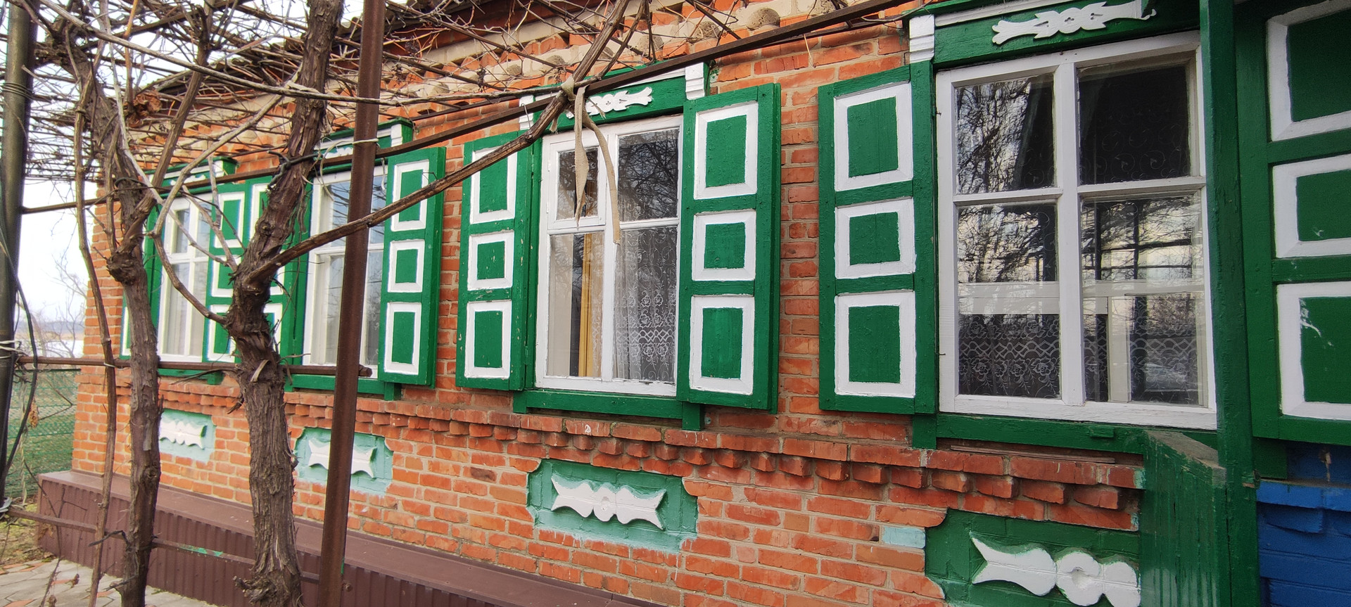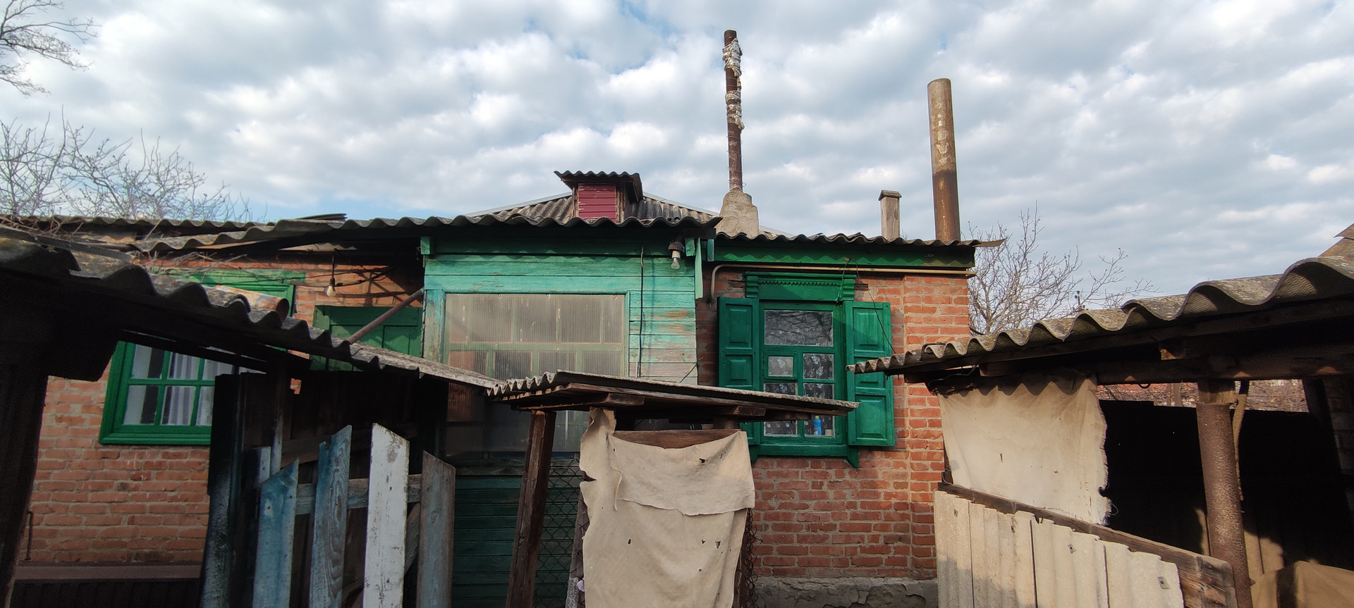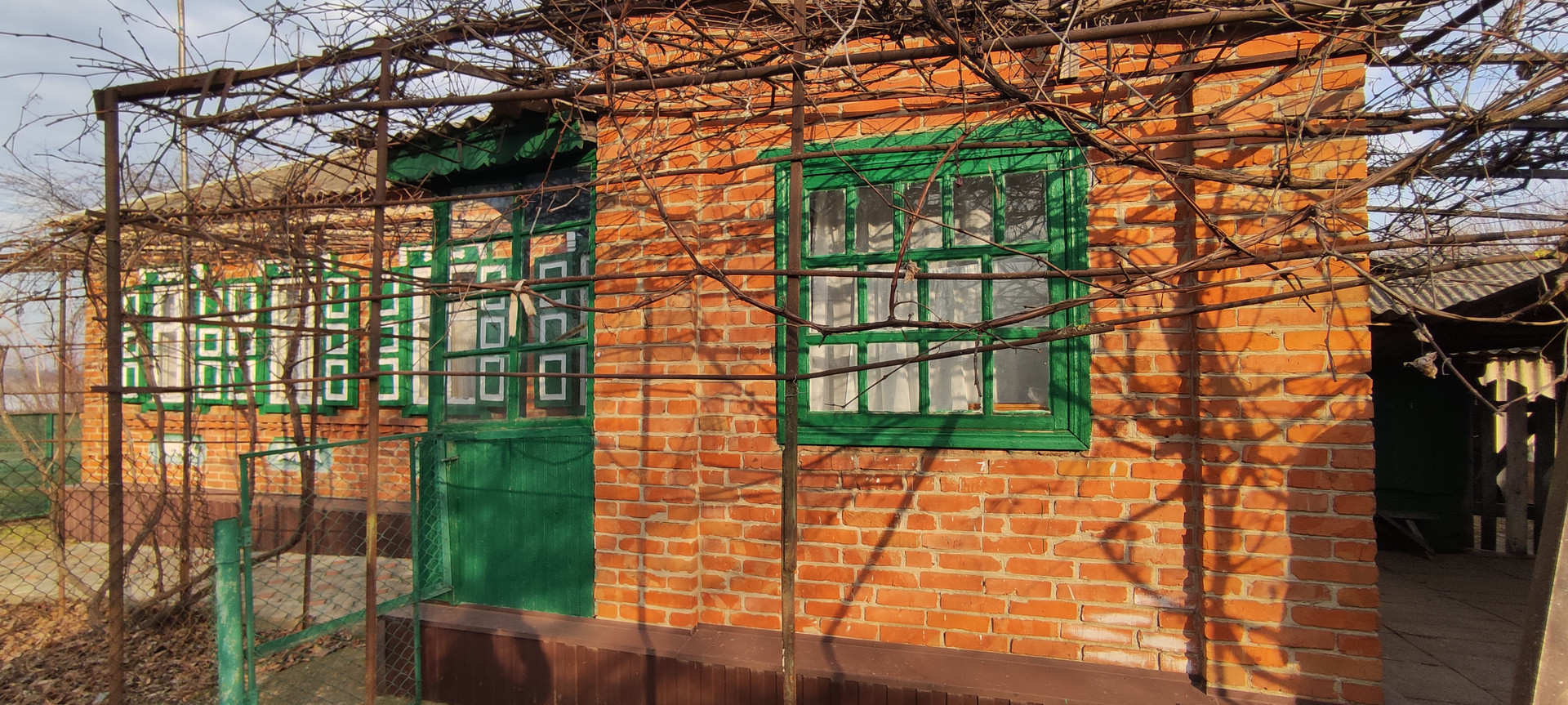 Кирпичный дом ,на высоком фундаменте .Все удобства в доме. Все коммуникации с счетчиками. Крыша -шифер , окна деревянные.