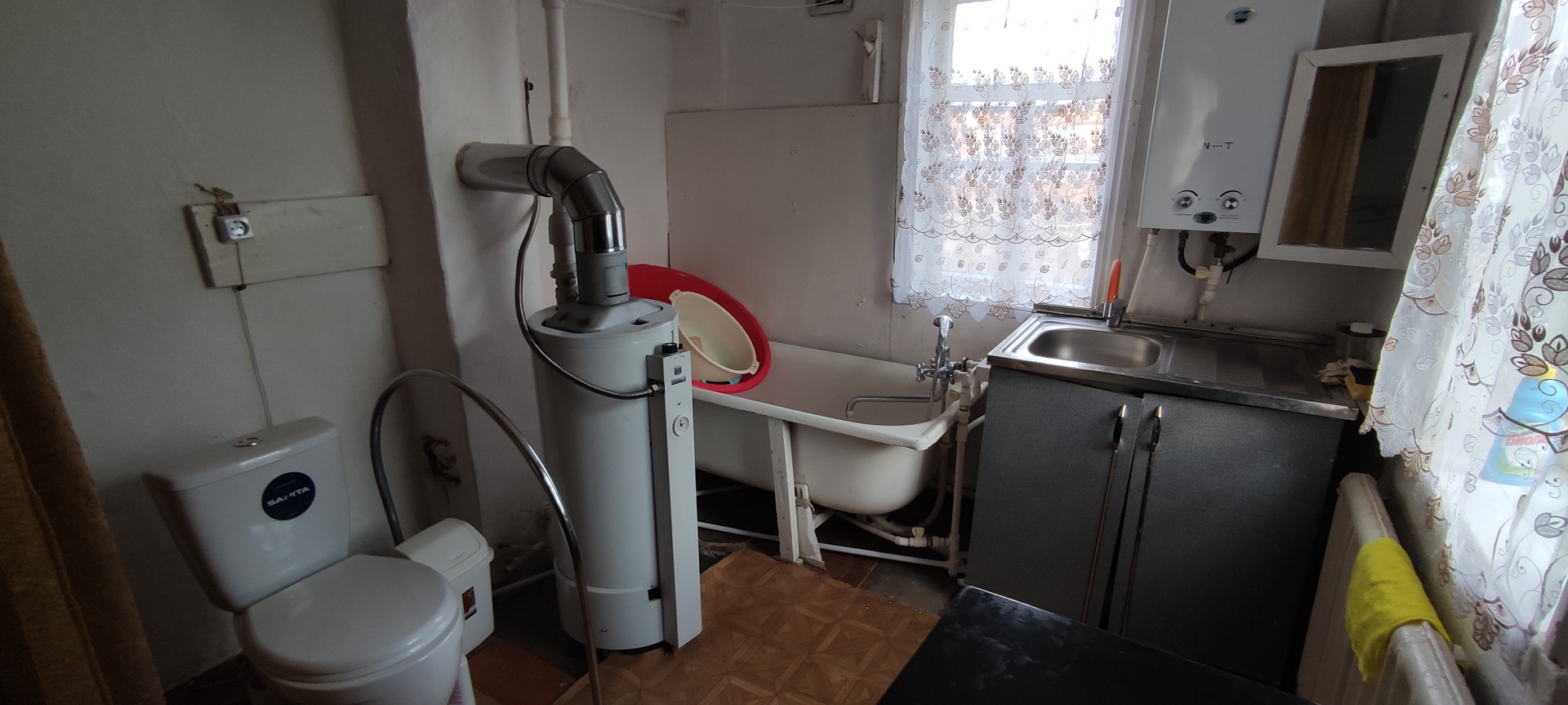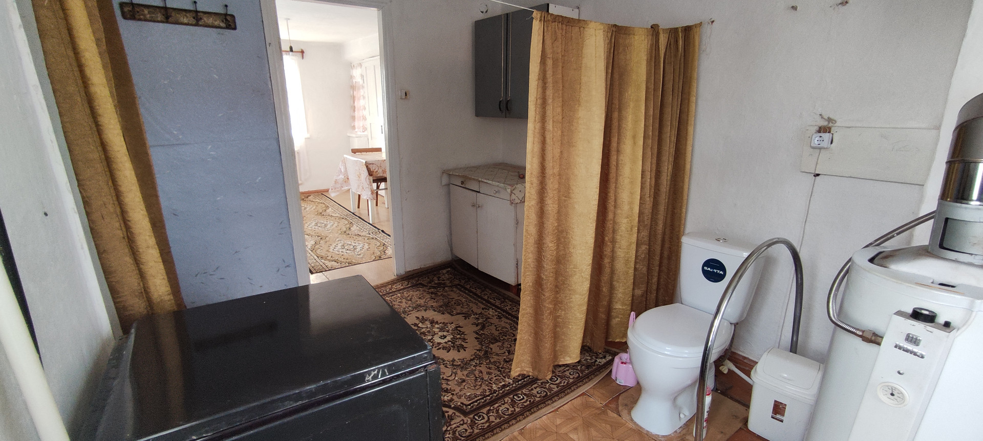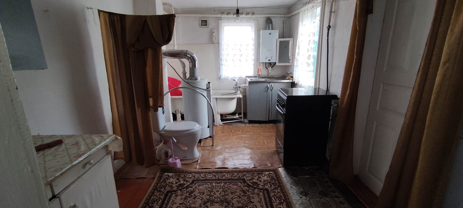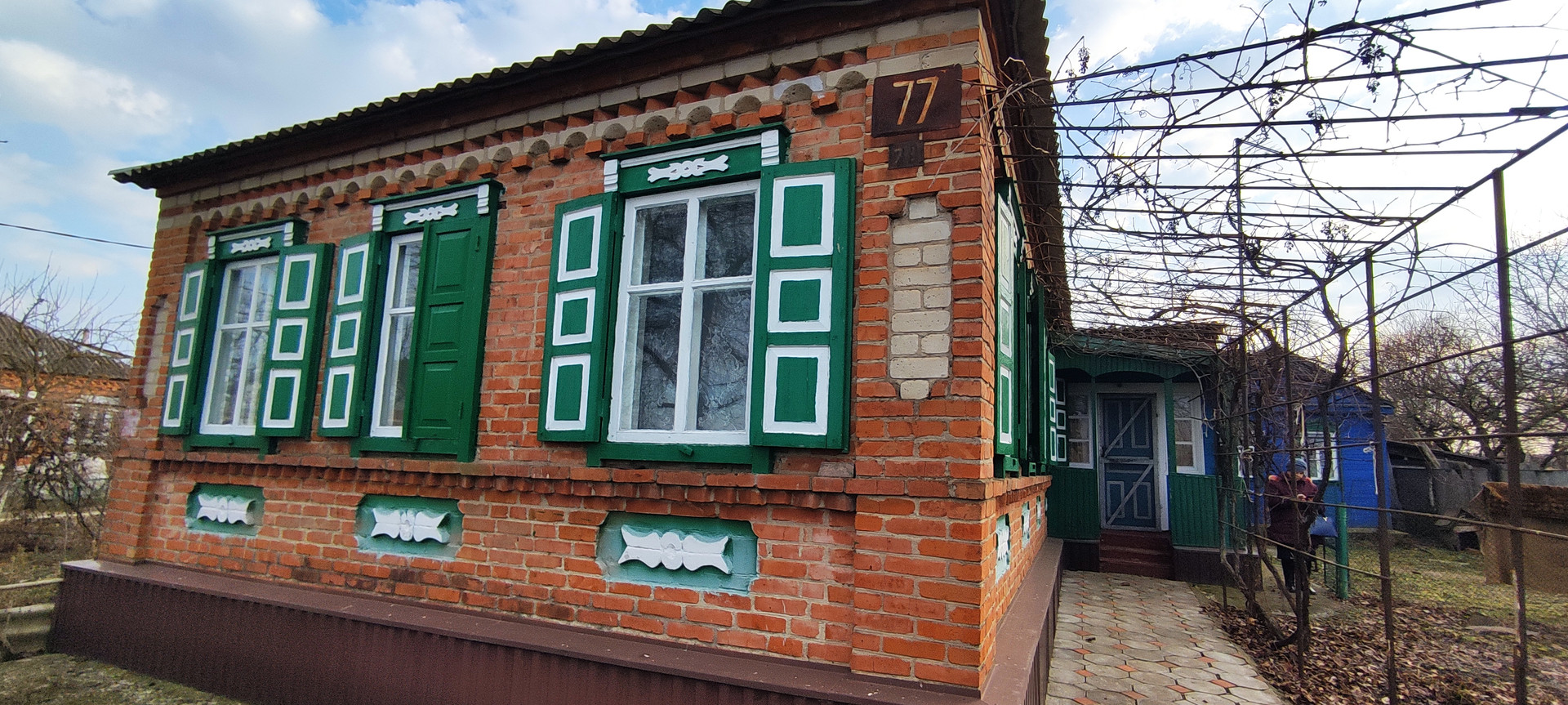Кирпичный дом ,на высоком фундаменте .Все удобства в доме. Все коммуникации с счетчиками. Крыша -шифер , окна деревянные.
