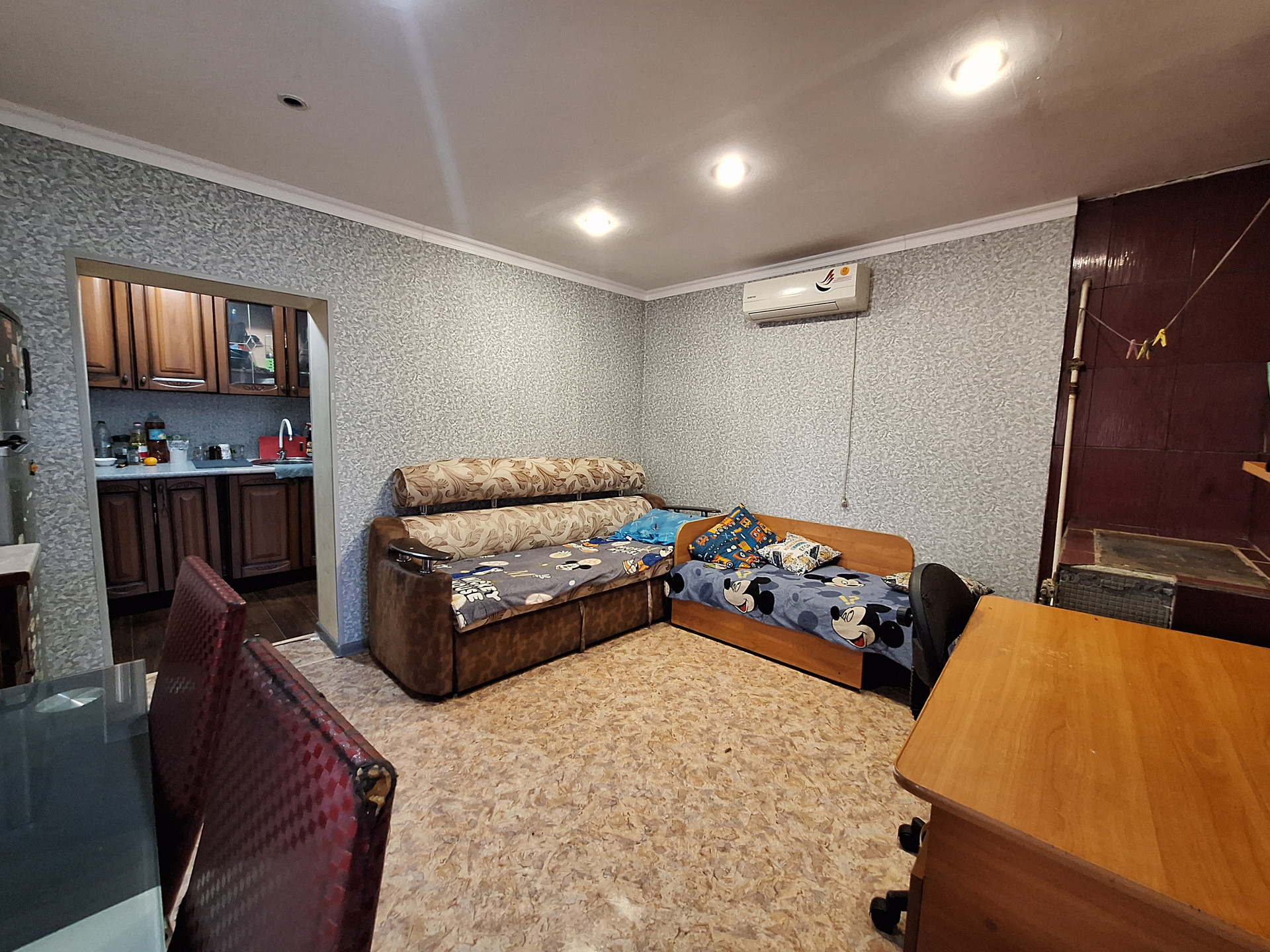 Двух комнат и коридора. Отопление-газовый камин.Окна МП. Входная дверь Металлическая. Установлена сплит-система.В коридоре газовая плита.