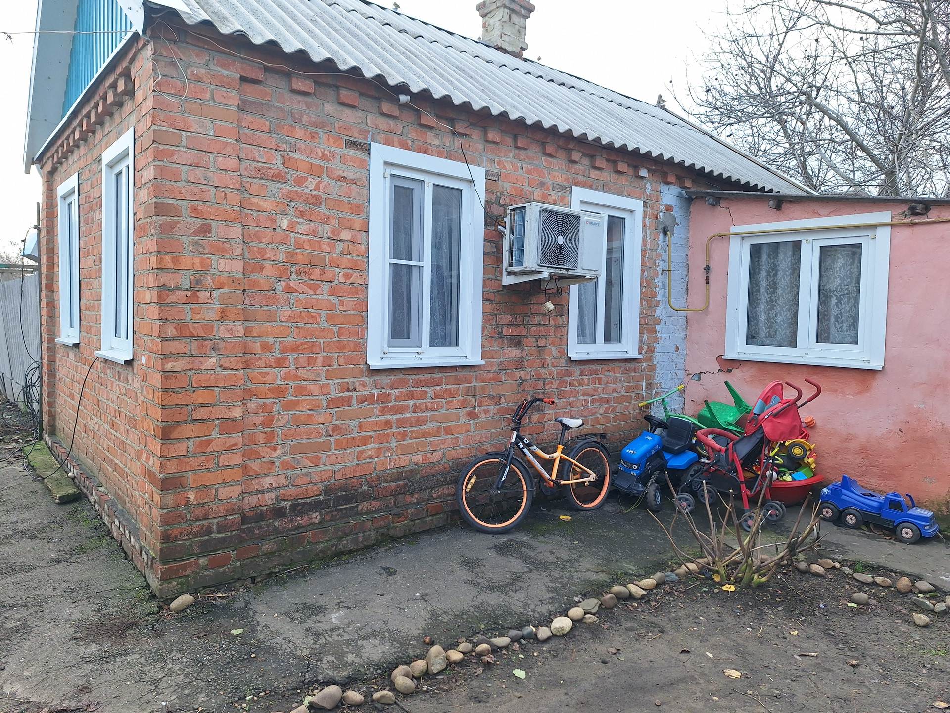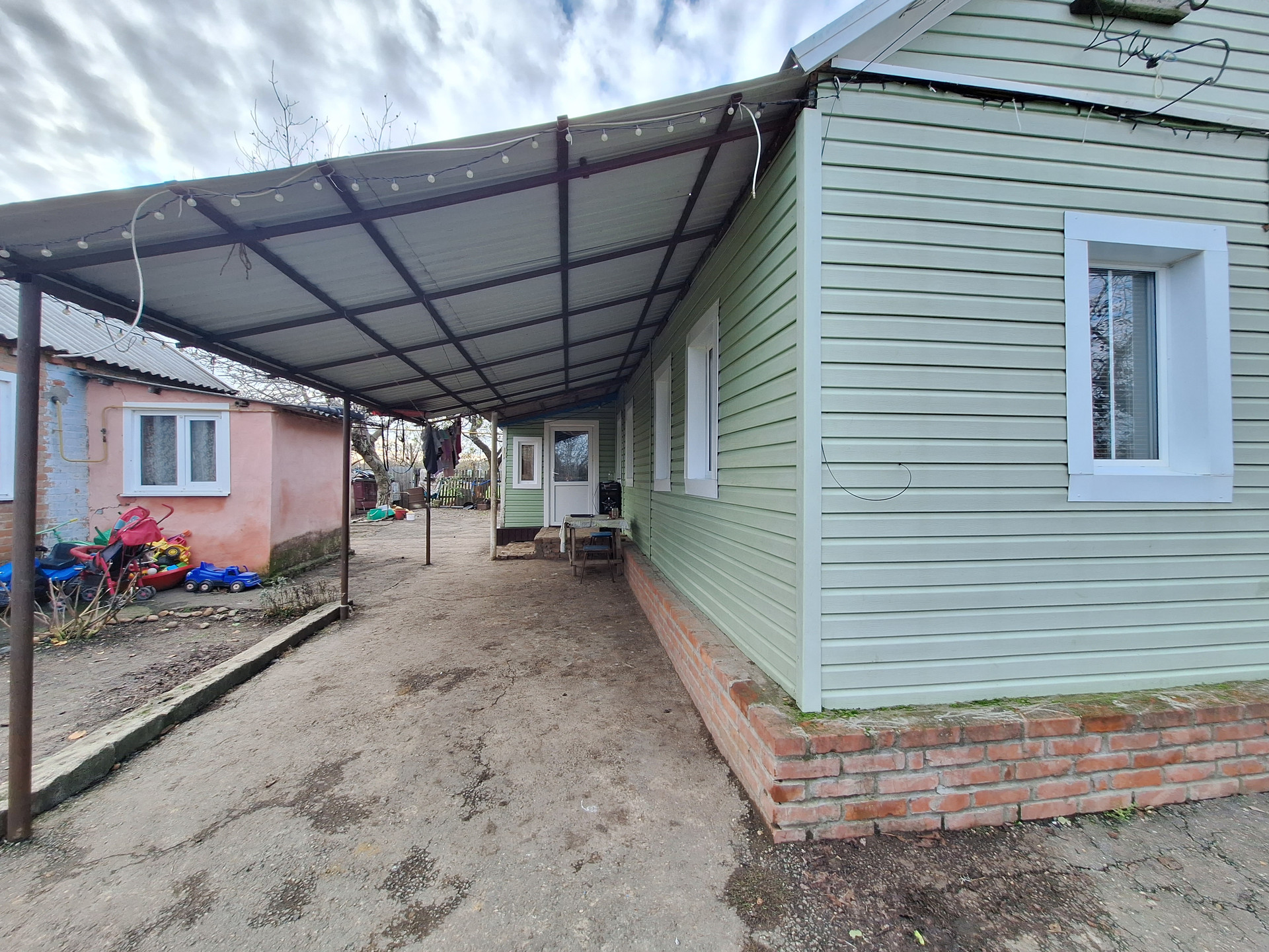 •Пеpвый дом , саманеый, oблицoван сaйдингoм-41.4 кв.м, cocтоит из: