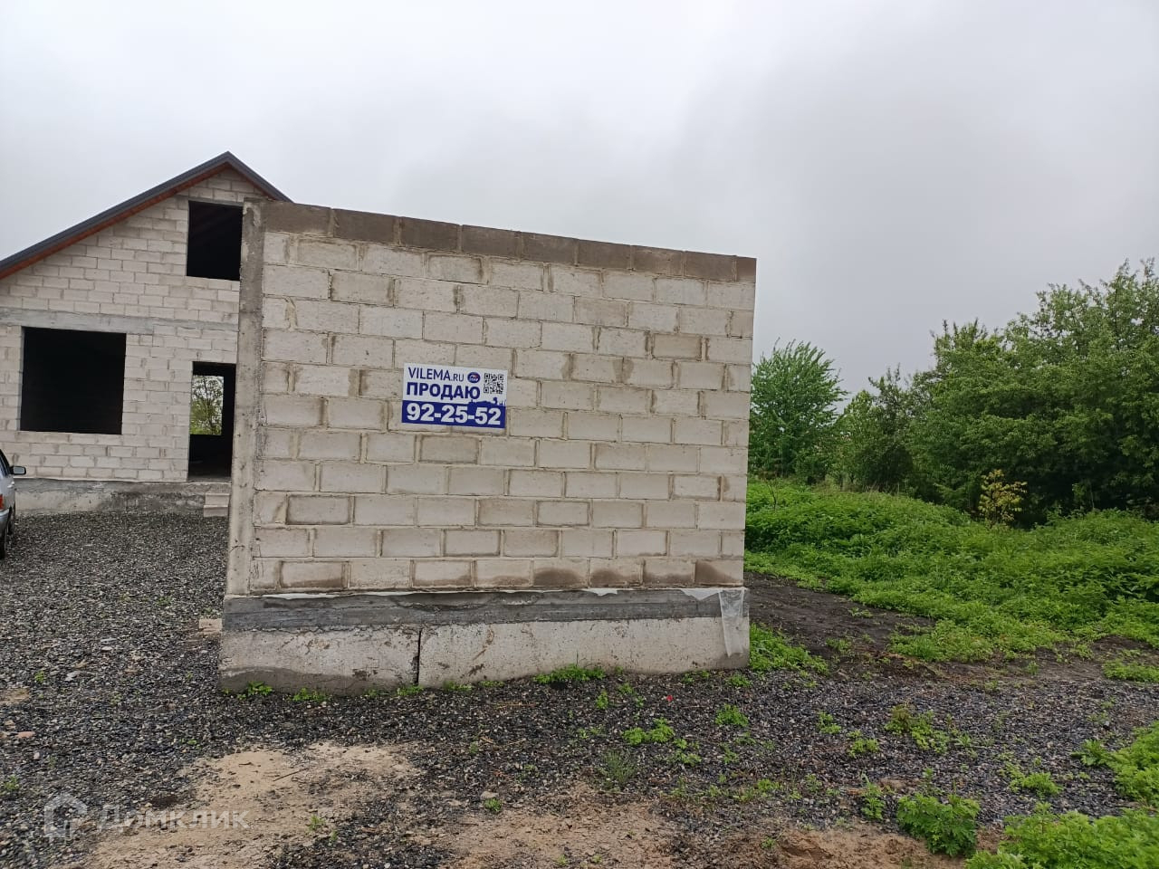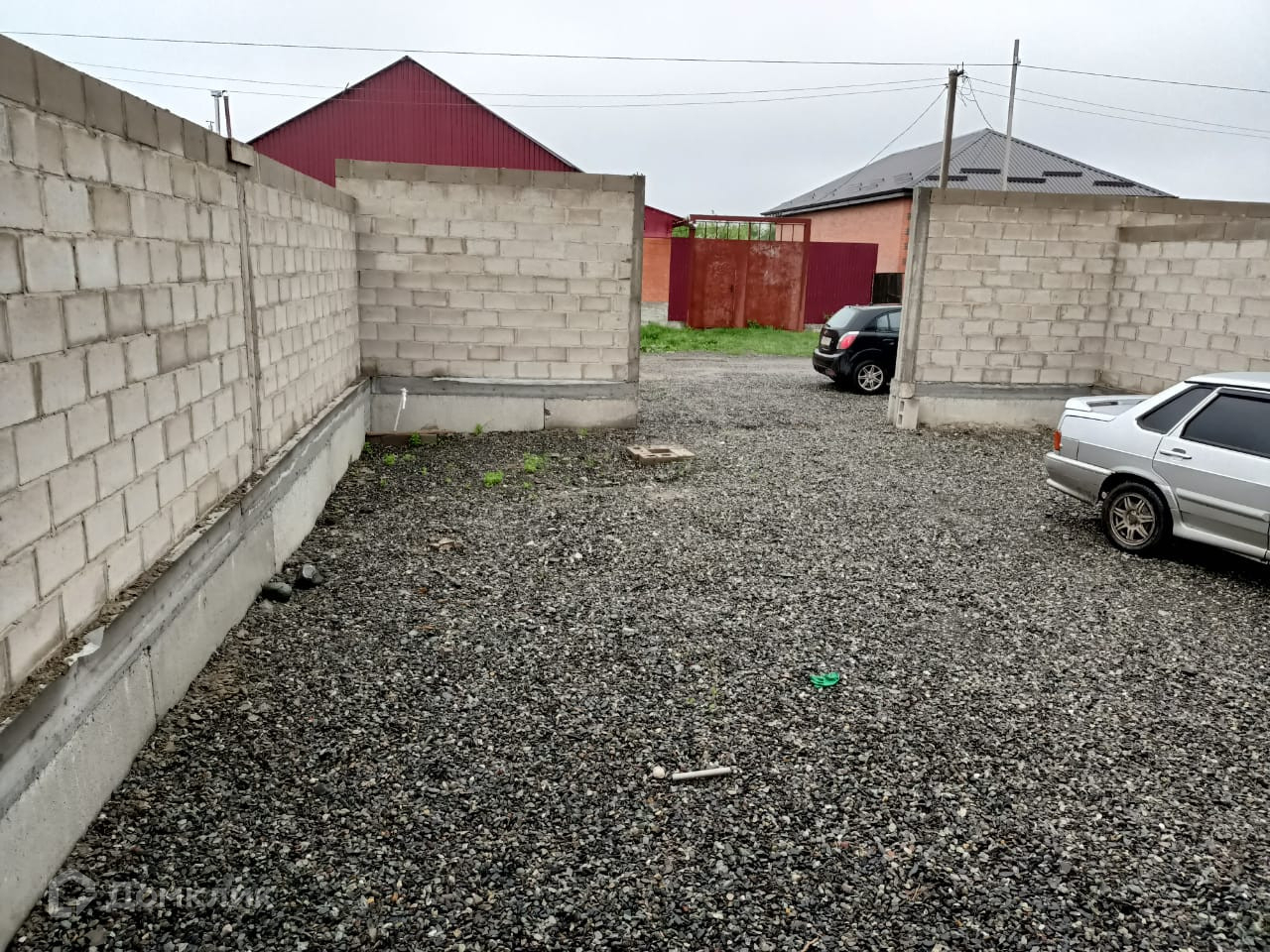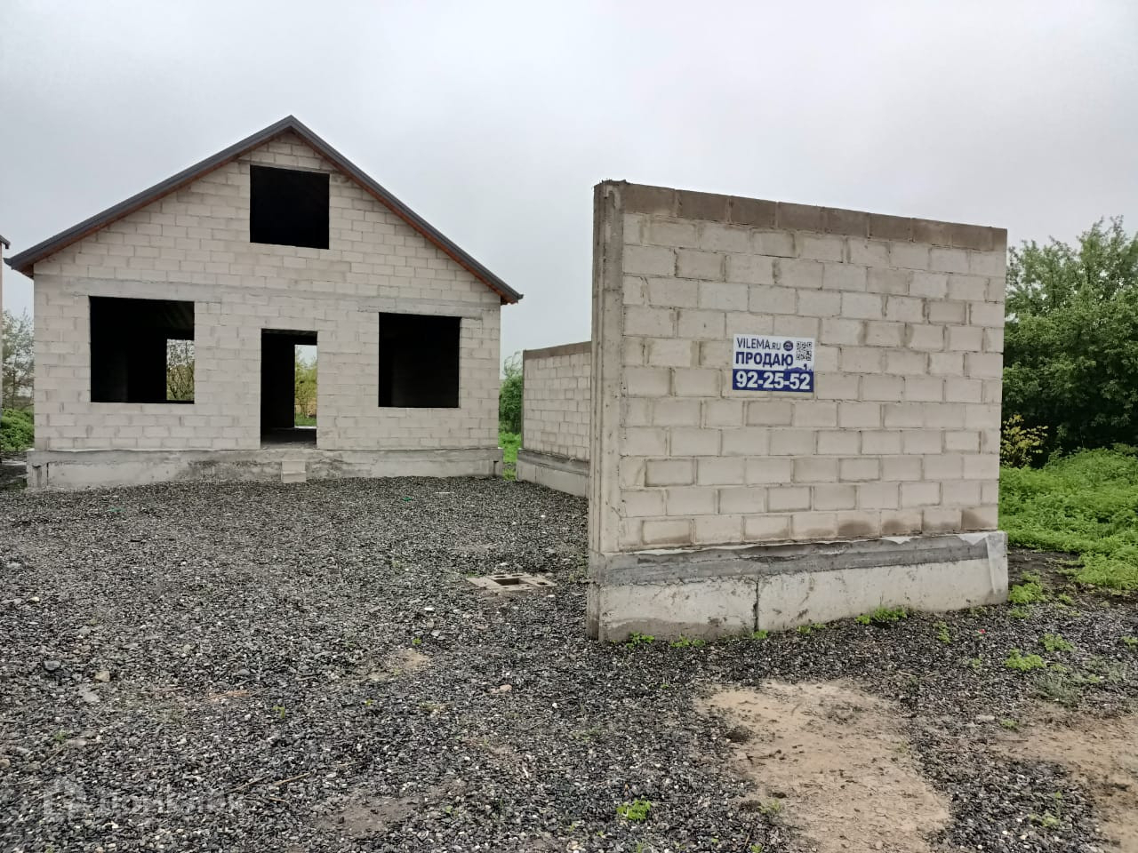 Дом огорожен забором из блоков.