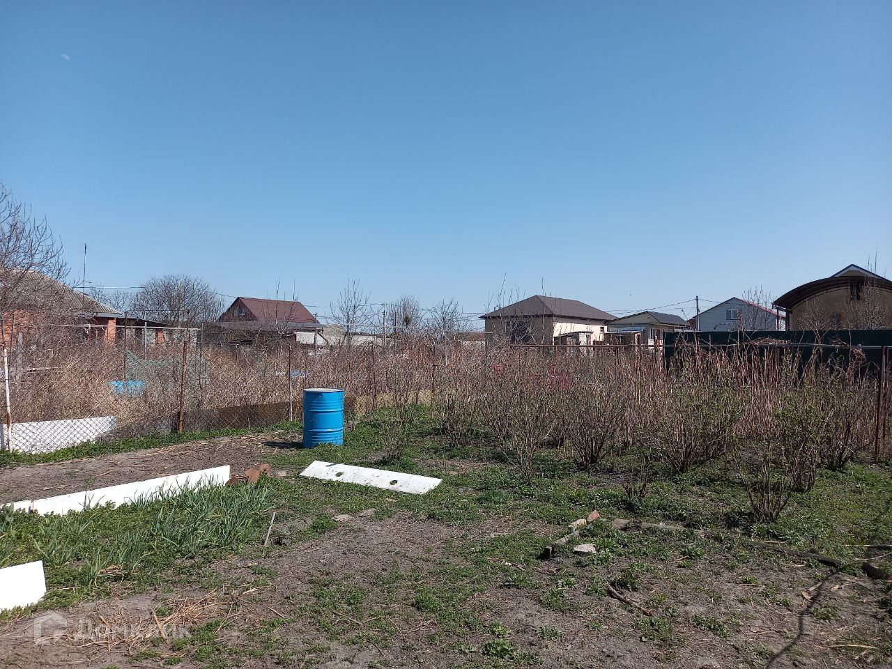 В огороде ,который отделен забором все виды фруктовых деревьев и ягод