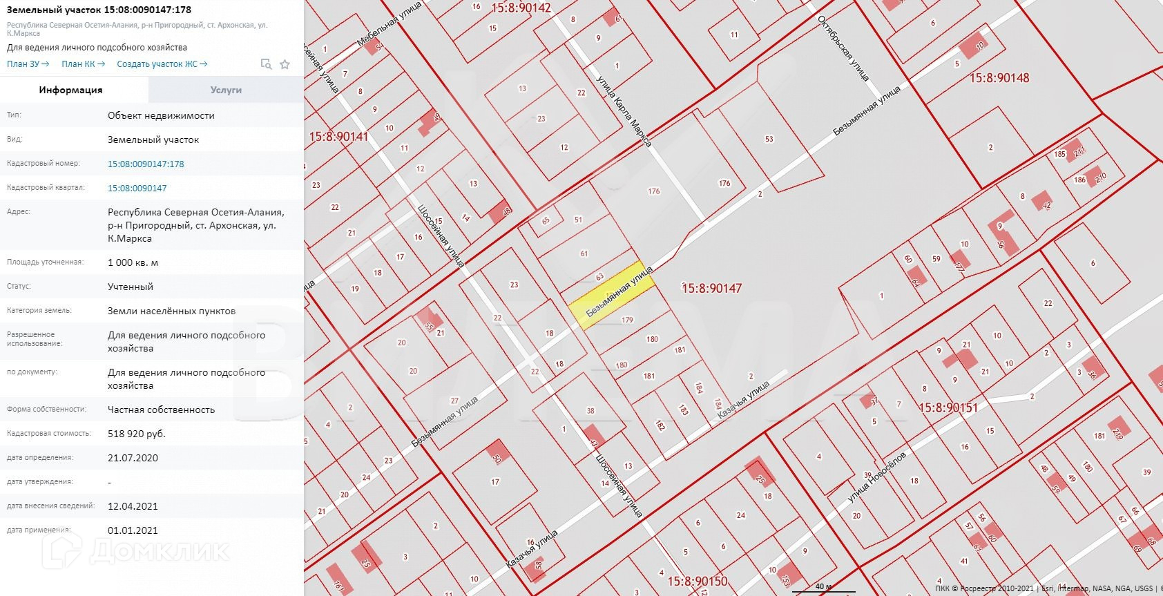 Участок под ИЖС, 7 сот. на продажу в станице Архонской, улица Карла Маркса