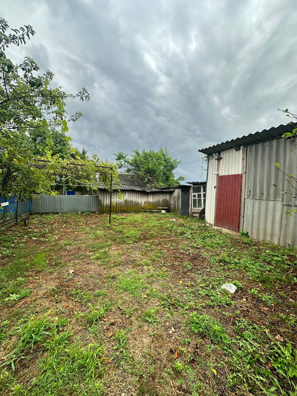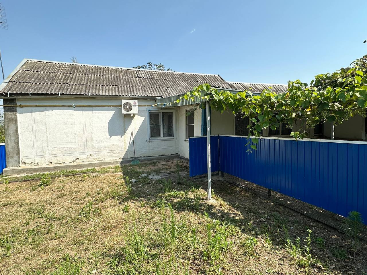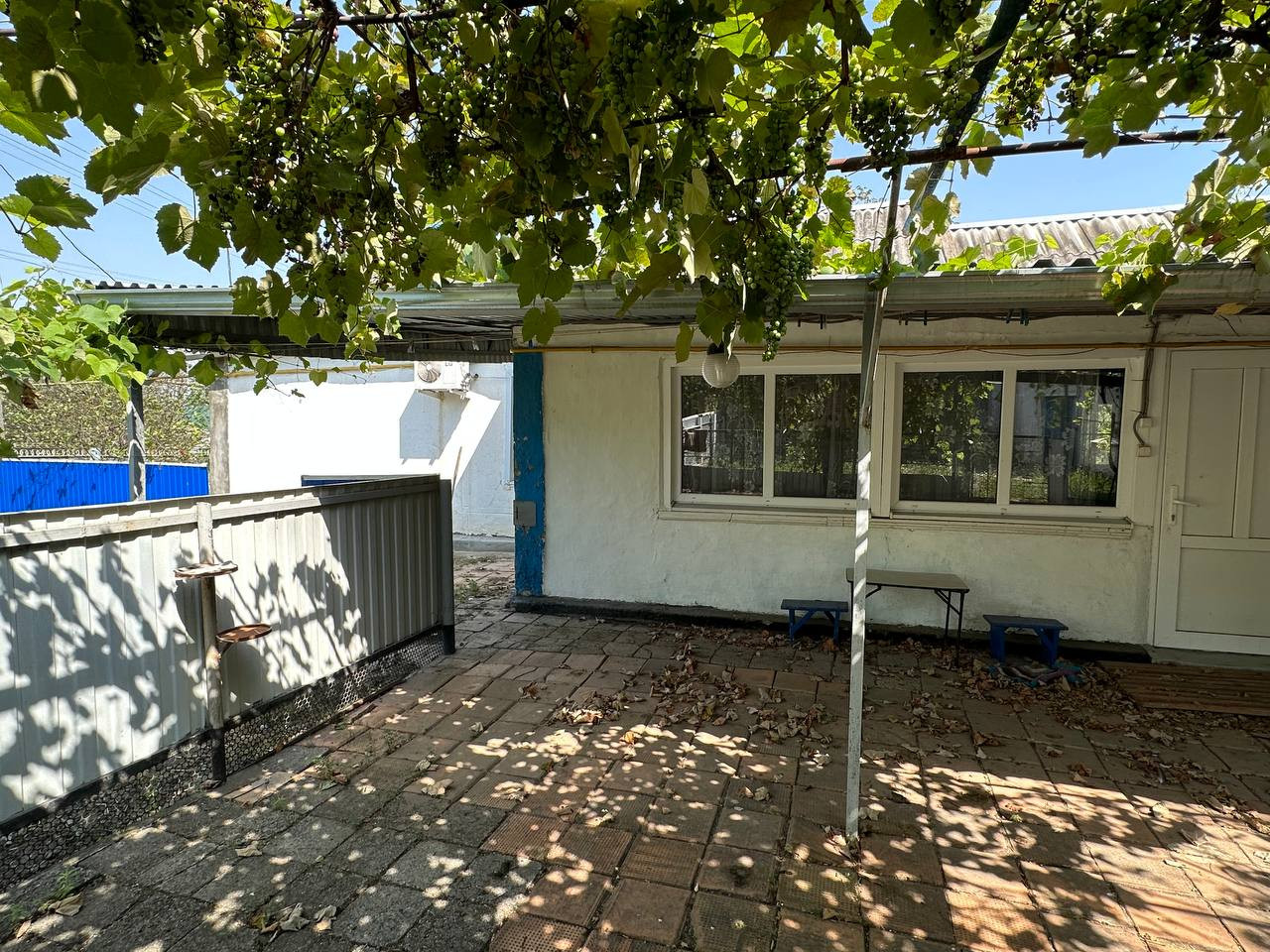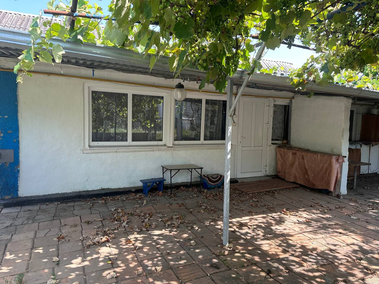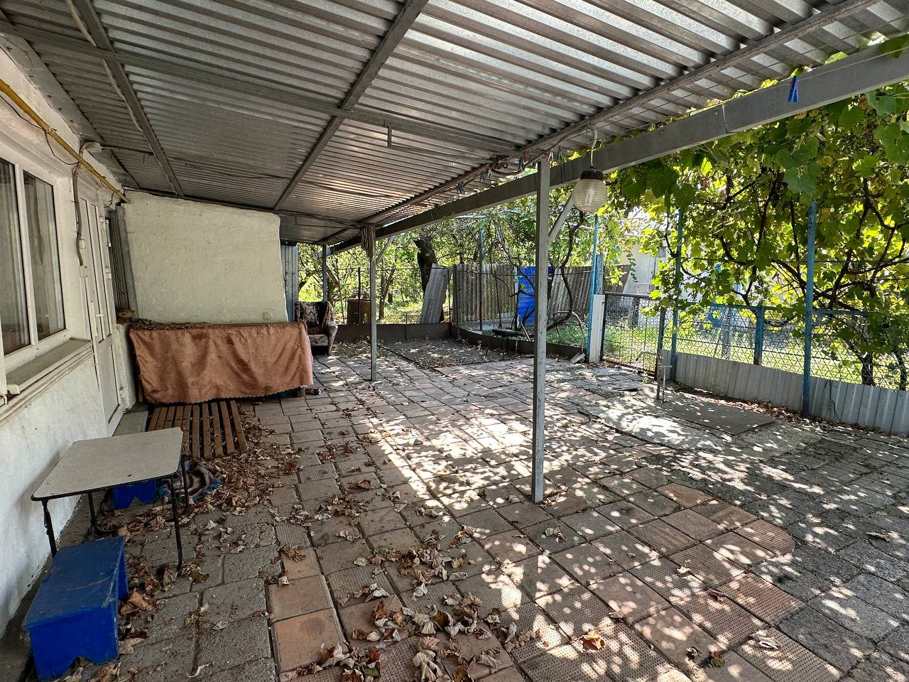 Широкий фaсад,28 м.Hа территории множество различных хоз.построек,где возможно также держать птицу и скот;огород и сад с плодовыми деревьями:груша,яблоня,слива,персик,черешня,есть виноградник и малина.Земельный участок в собственности,имеется межевание.