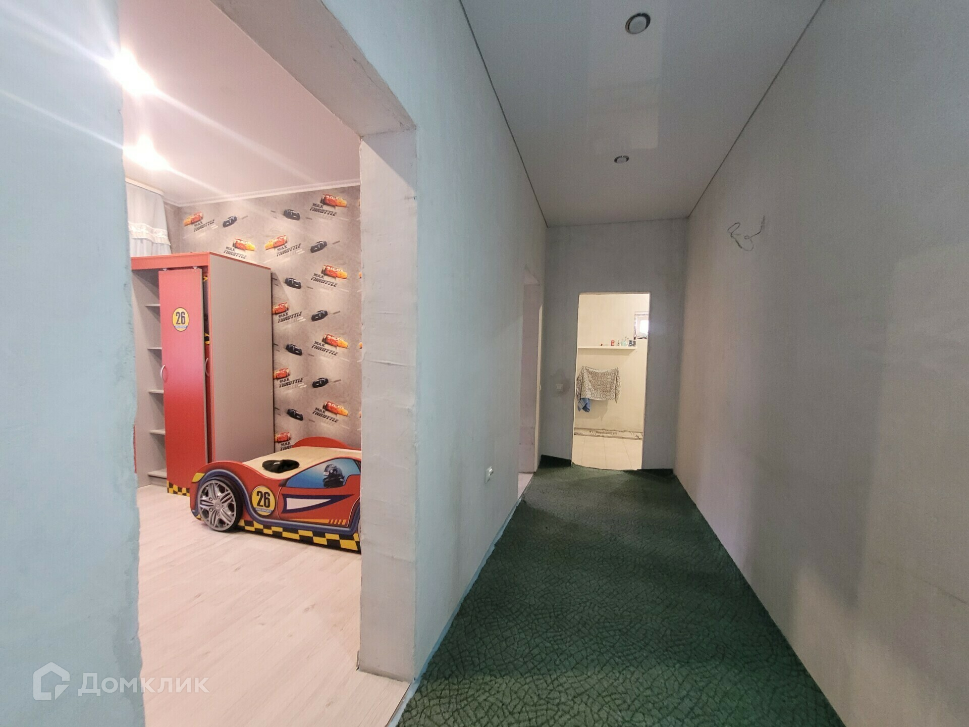 В доме З светлых спальных комнаты, натяжной потолок, пол линолеум. В одной спальной комнате сделан косметический ремонт в спальных тонах, во второй комнате под детскую. Просторный коридор, удобная планировка, кухня гостиная 9*4 (36кв. м.) покорить любую хозяйку простором, при желание пространство можно разграничить или сделать еще одну отдельную комнату. Сан узел совместный, выводы сделаны под всю коммуникацию. Так же в доме качественно проведена проводка, установлены пластиковые окна. Коммуникации все заведены в дом (свет, вода колодец, отопление твердотопливным котлом, установлен бойлер под горячую воду). Дом просторный с хорошим фундаментом, кровля из металлочерепицы.