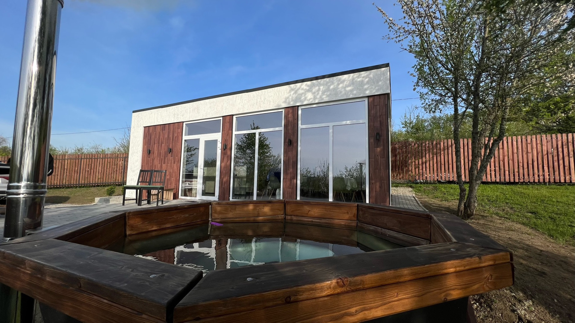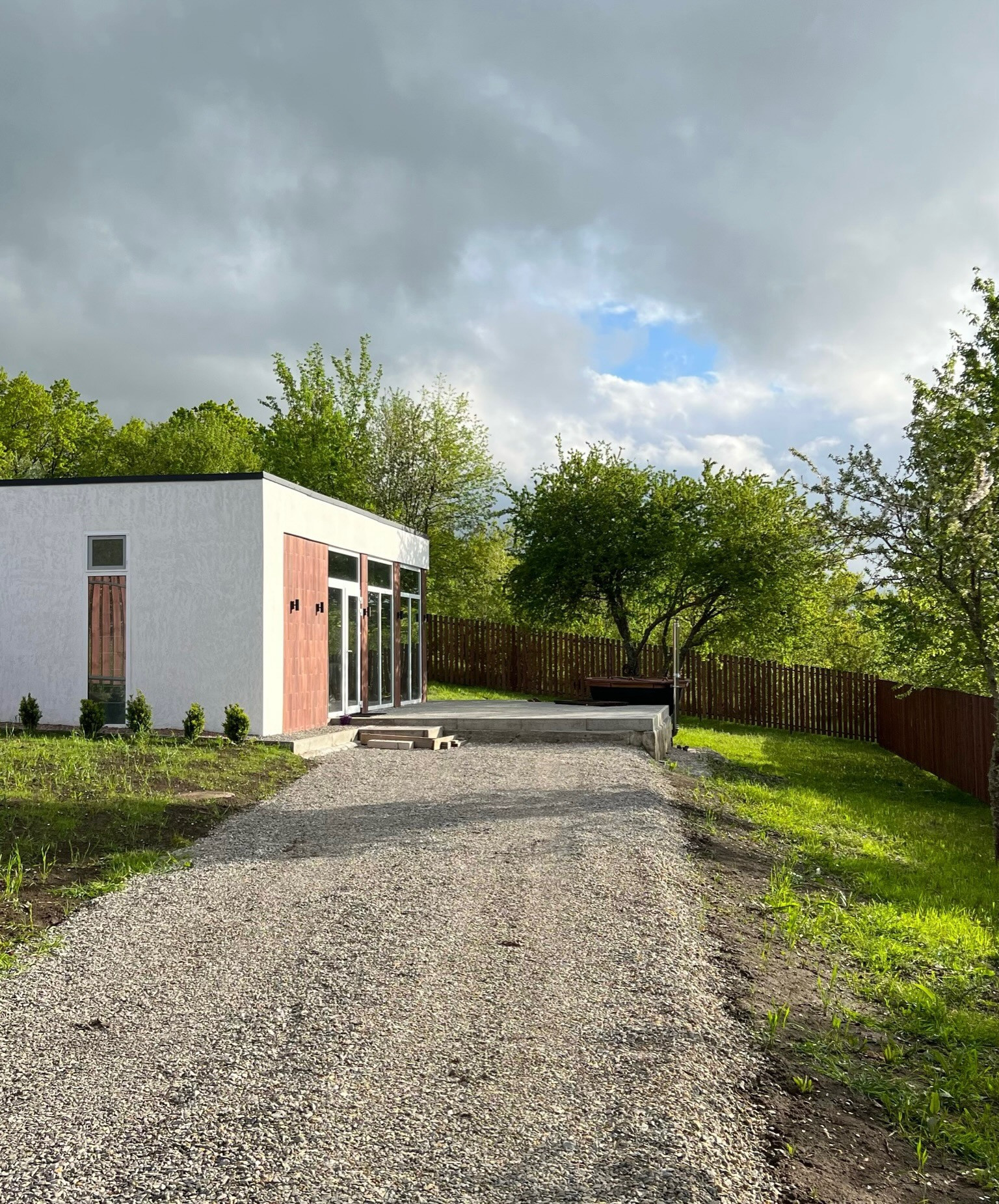 На участке отсыпан заезд, забор, откатные ворота, терраса , горячий чан на 8 мест.