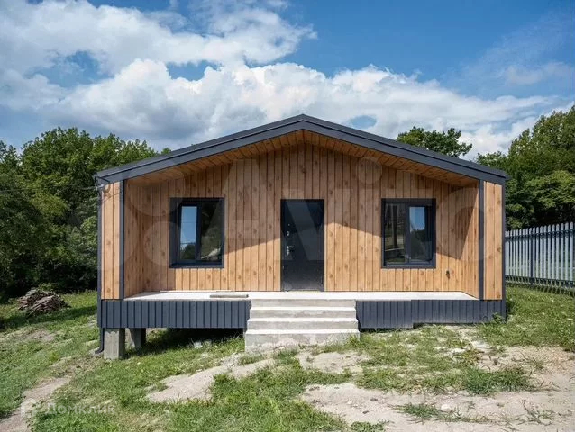 Дом построен из монолитного фибробетоноблока в стиле Барон: 3 комнаты, просторная кухня-гостиная, совмещенный сан.узел. Общая площадь дома составляет около 70 м2, земельный участок от 10 до 16 соток. Обустроены две террасы. Установлены двойные стеклопакеты с антибликом.