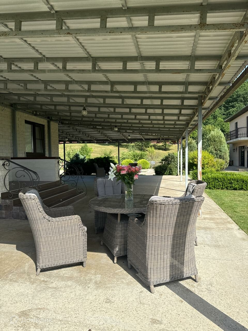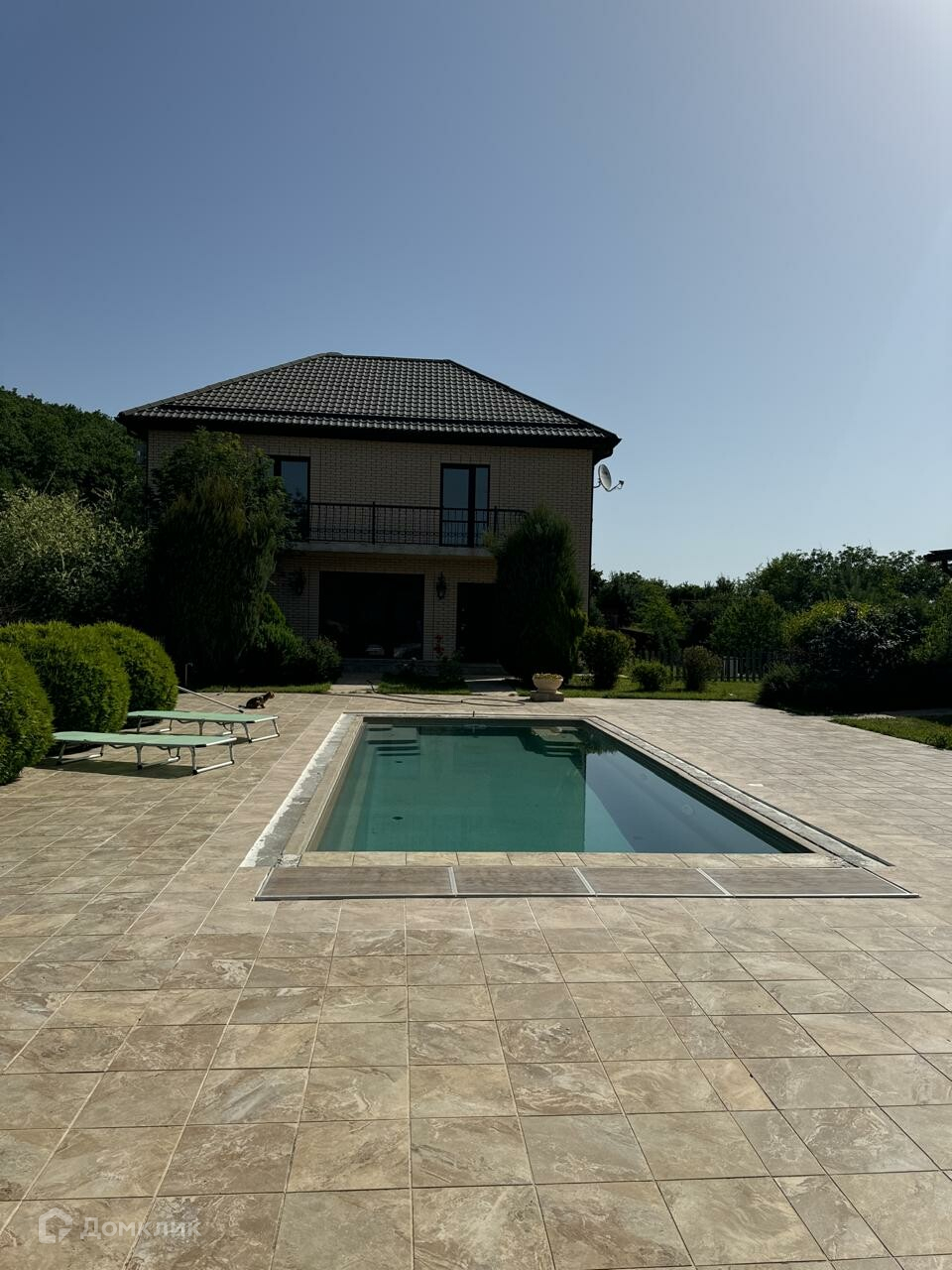 На участке стоит два дома, бассейн, гараж на два автомобиля и хозблок с гаражом для квадроциклов .