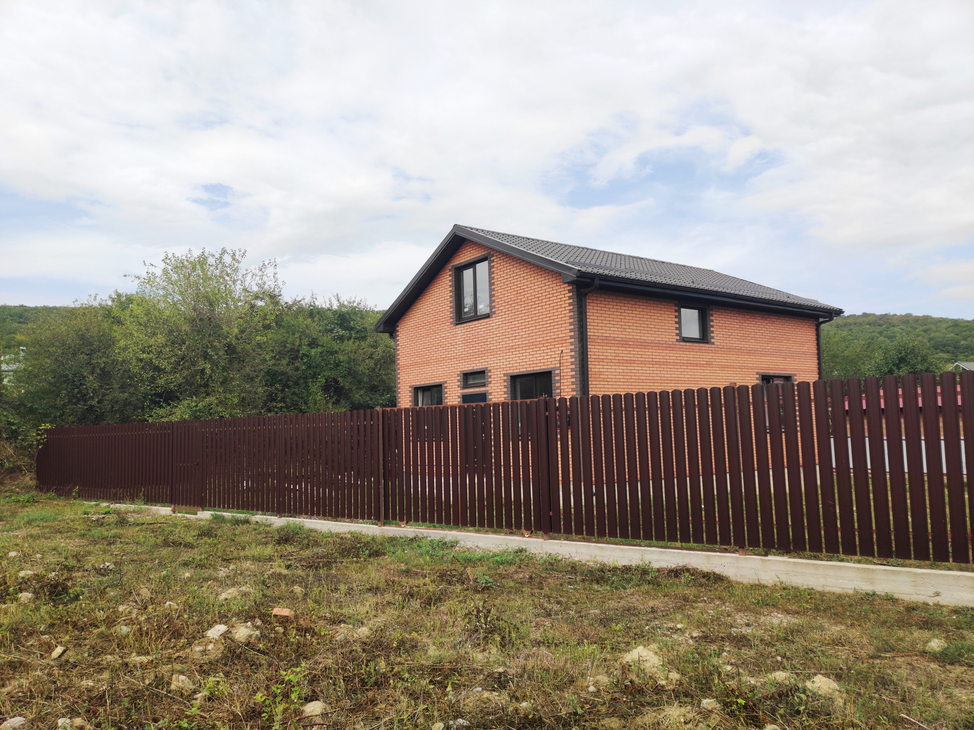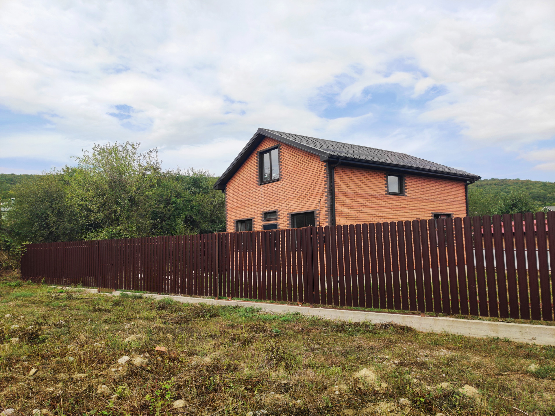 Дом огорожен забором