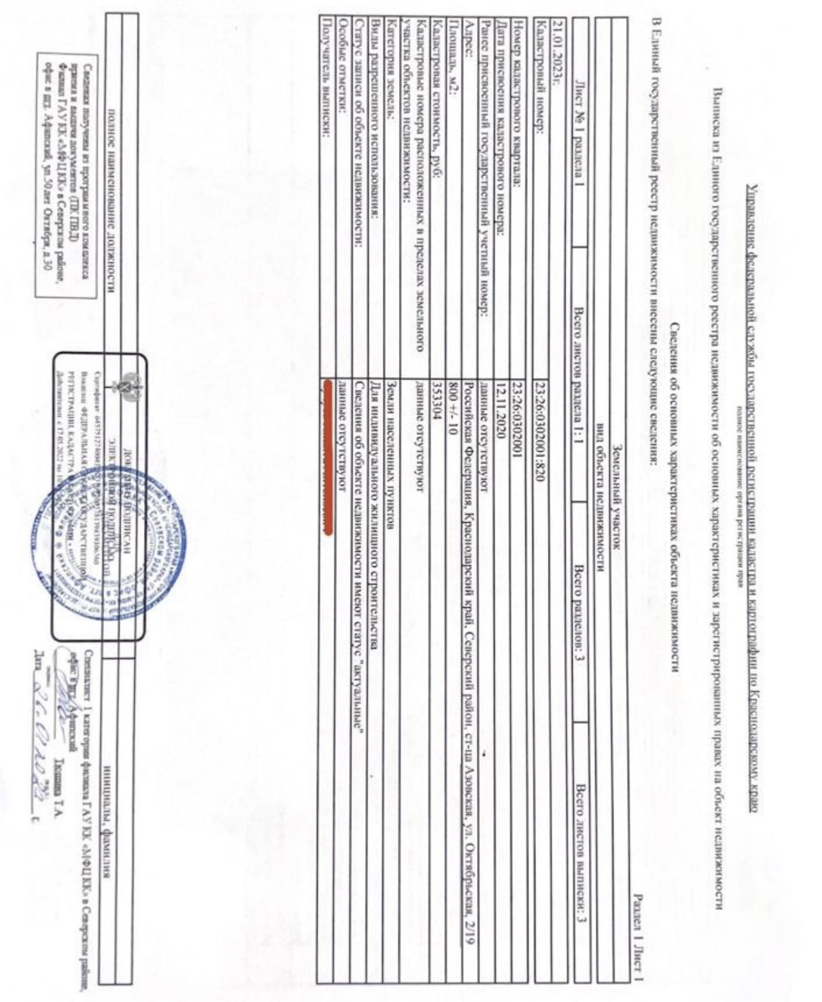 ВЫПИСКА ЕГРН от 21.01.23 НА ПОСЛЕДНИХ ФОТО