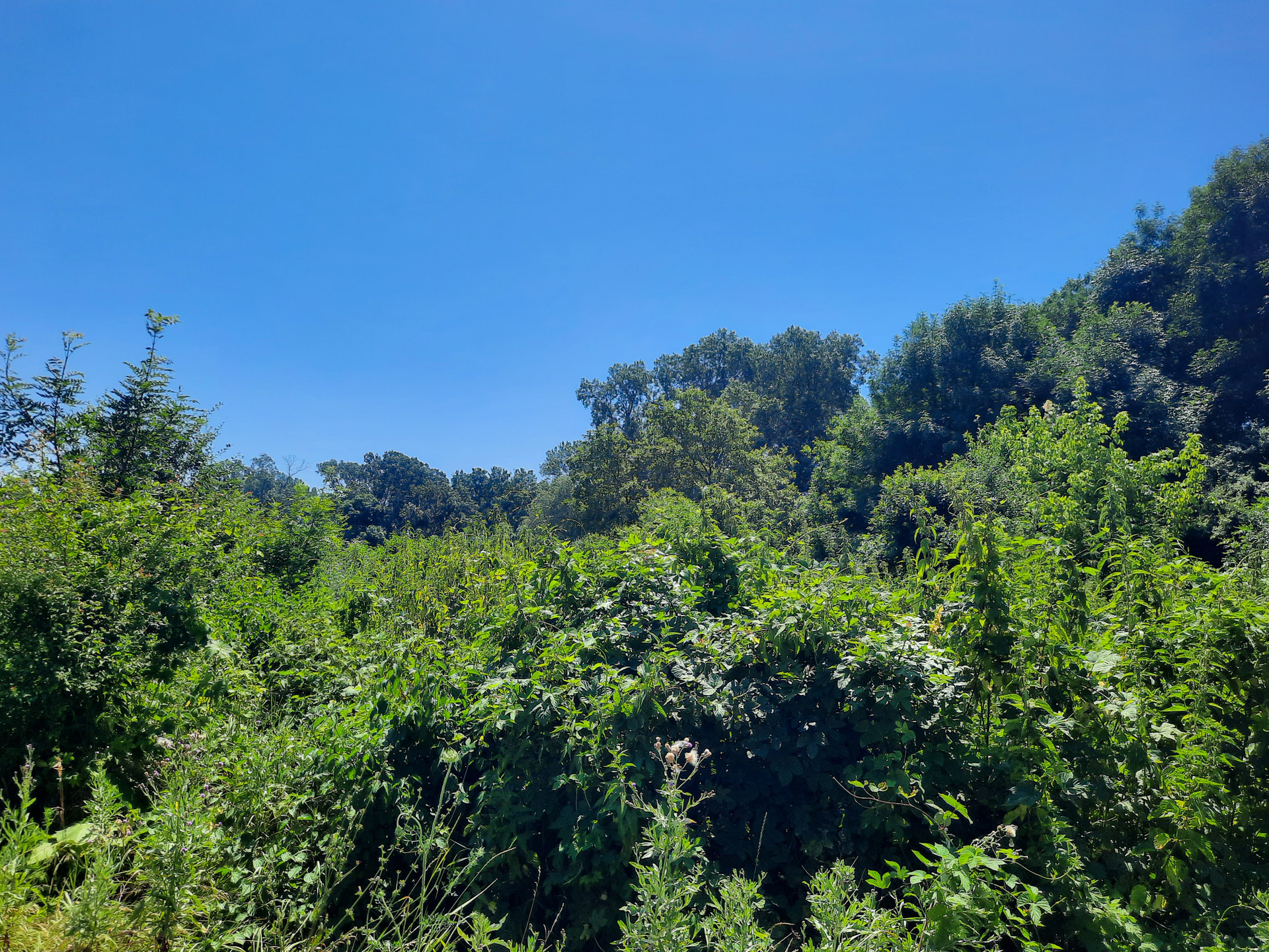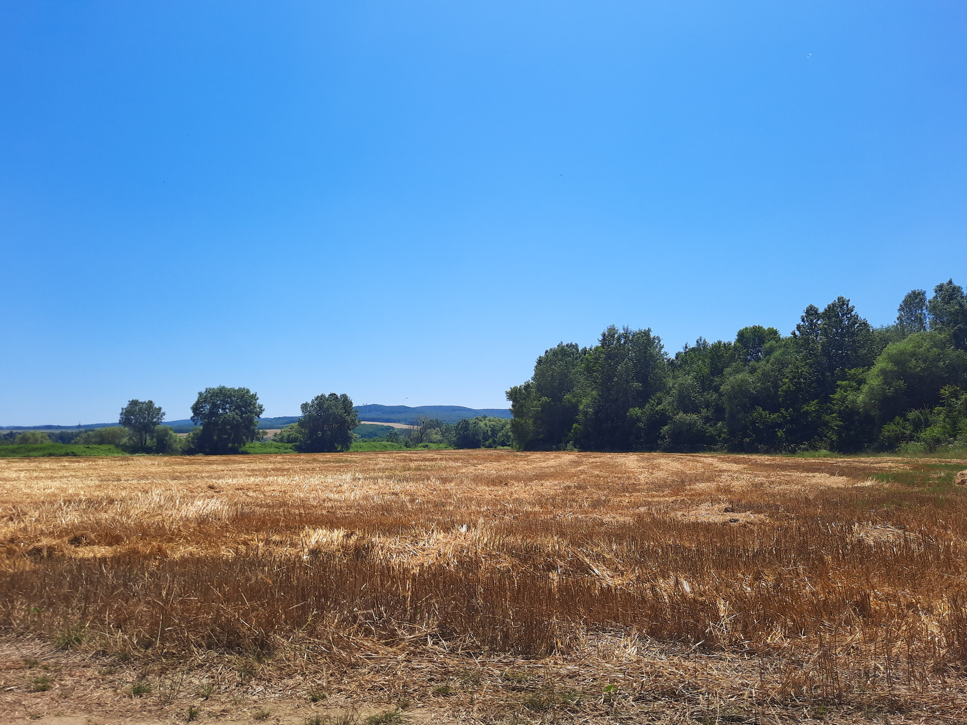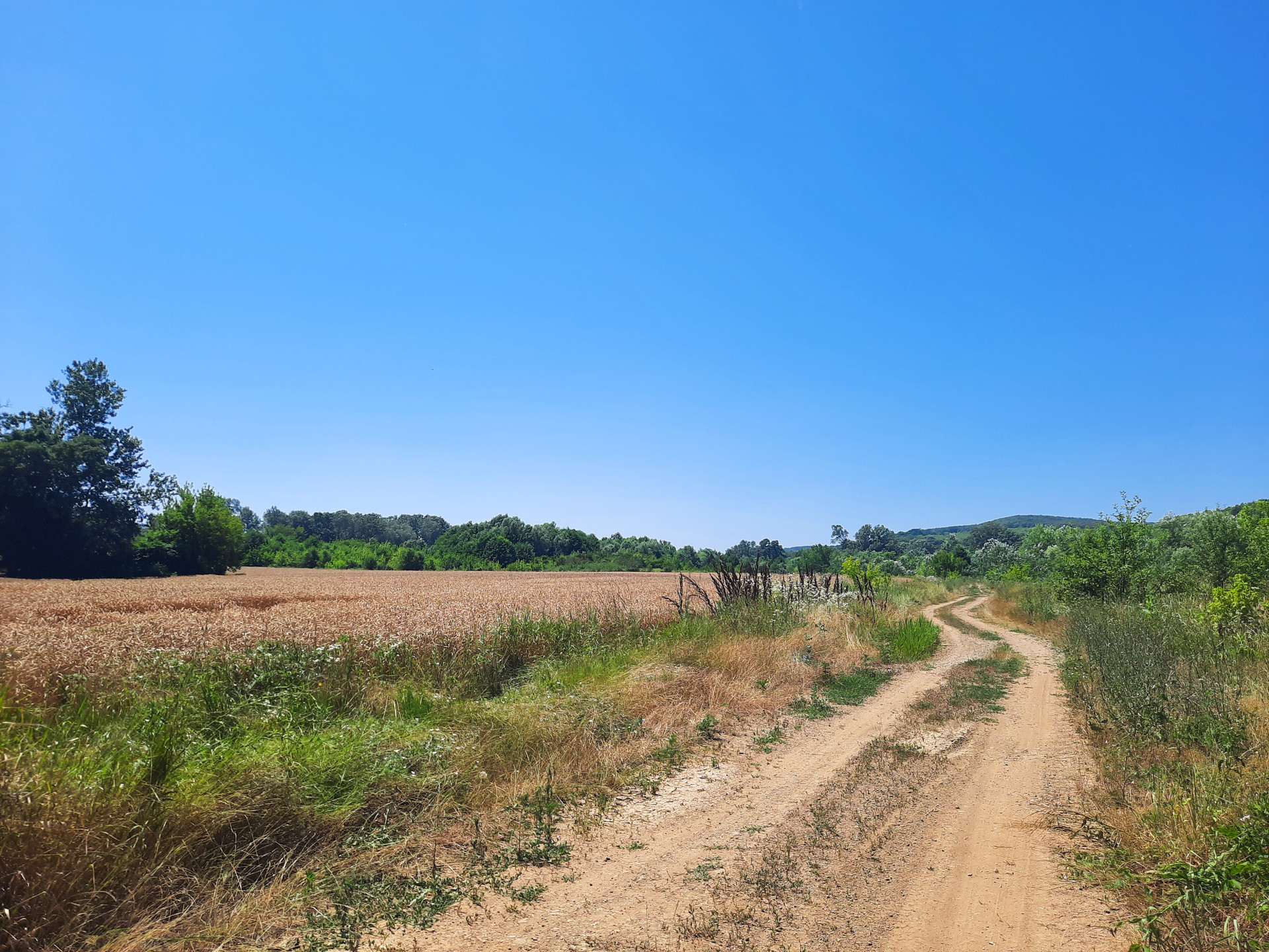 На участках пастбища, рощи, лес, на некоторых растет пшеница