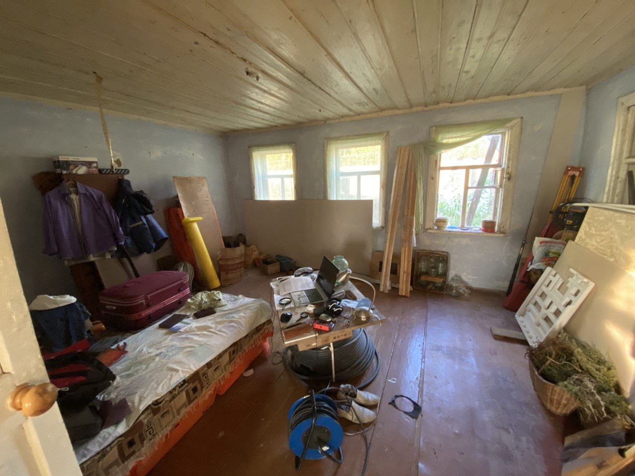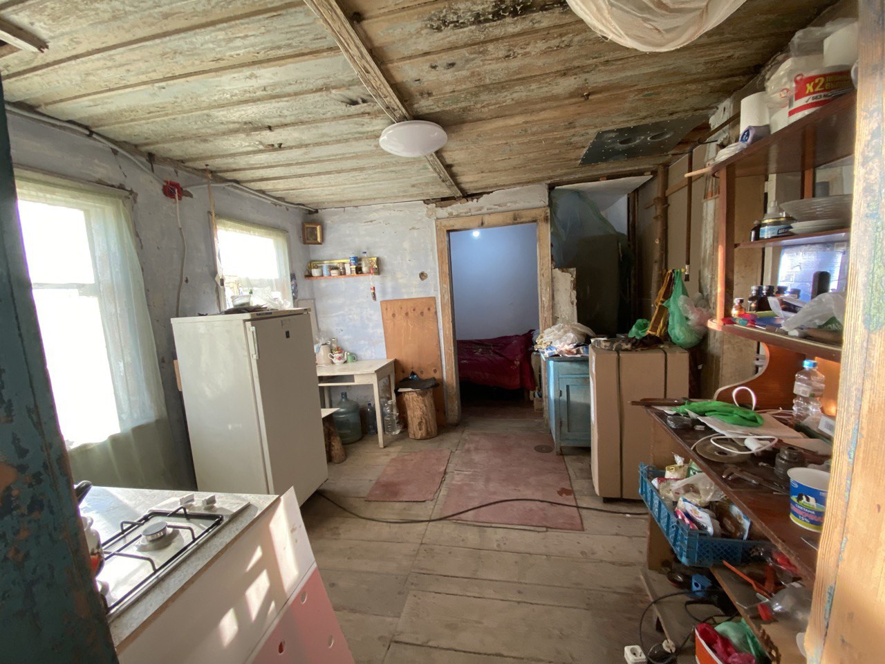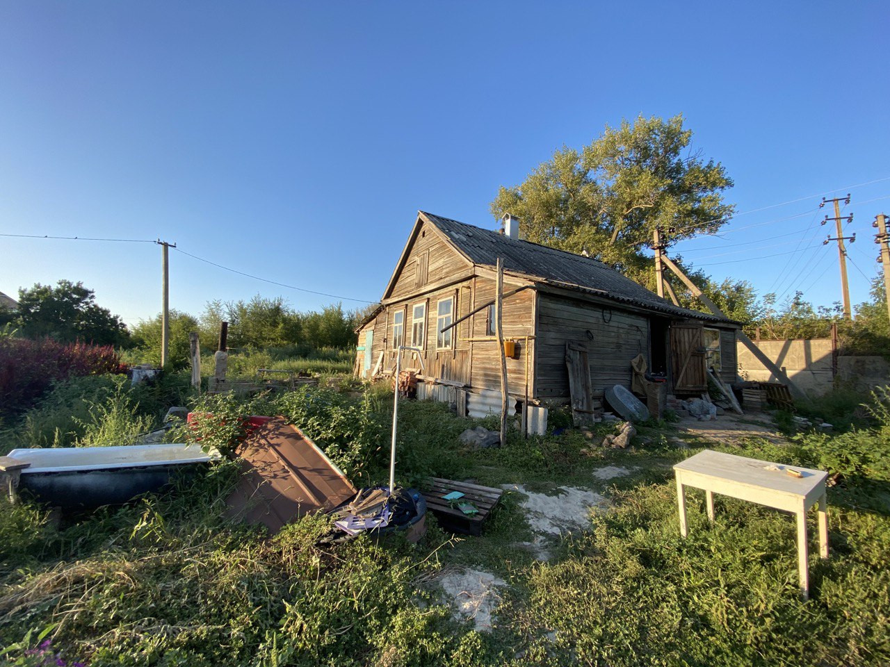 Площадь 50 м2, газ, вода , электричество в доме. Земля 20 соток. Участок квадратный с выходом на две улицы. Торг уместен.