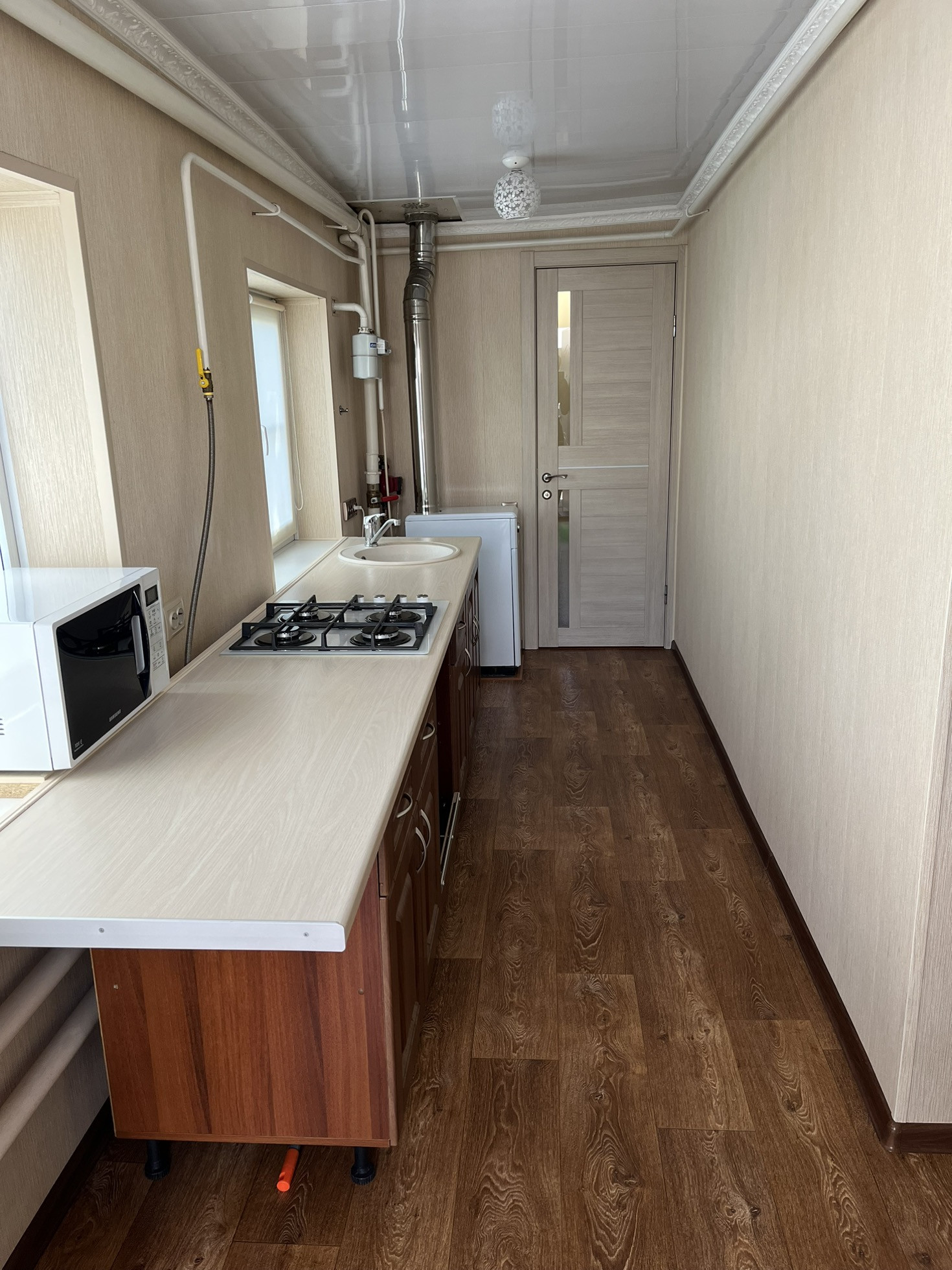 Продается дом! В отличном районе, совсем рядом школа, больница, детский сад, магнит, пятерочка. Имеются все необходимые удобства, плюс летняя кухня с газом площадью 15 м2 но без ремонта. Огород, ангар 14*50м. Скважина новая, бочка для полива. Двор не захламлен, гараж большой можно вместить два автомобиля. С водопроводом и электричеством проблем нет. Улица асфальтирована.