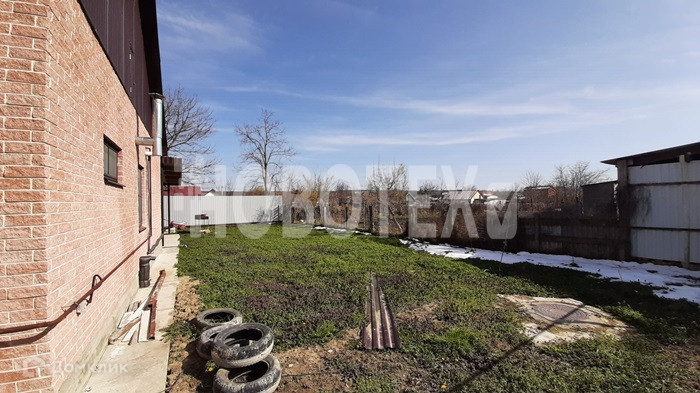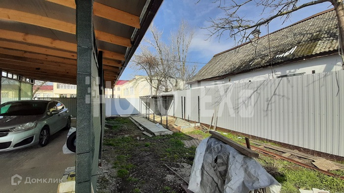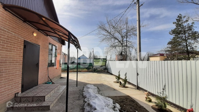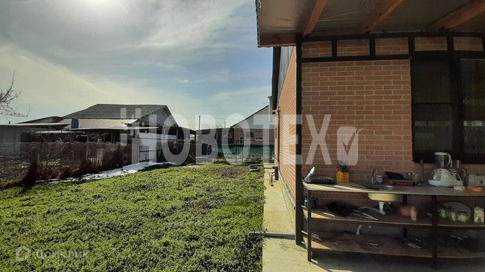 Сбоку дома сделан навес. Под него выведено освещение и холодное водоснабжение. Вмещает три машины, сильные снегопады выдерживает. Двор забетонирован. Перед домом высажены туи. За домом есть земля для постройки баньки или разведения огорода. Большой вольер для вашего питомца. Посажены фруктовые деревья.