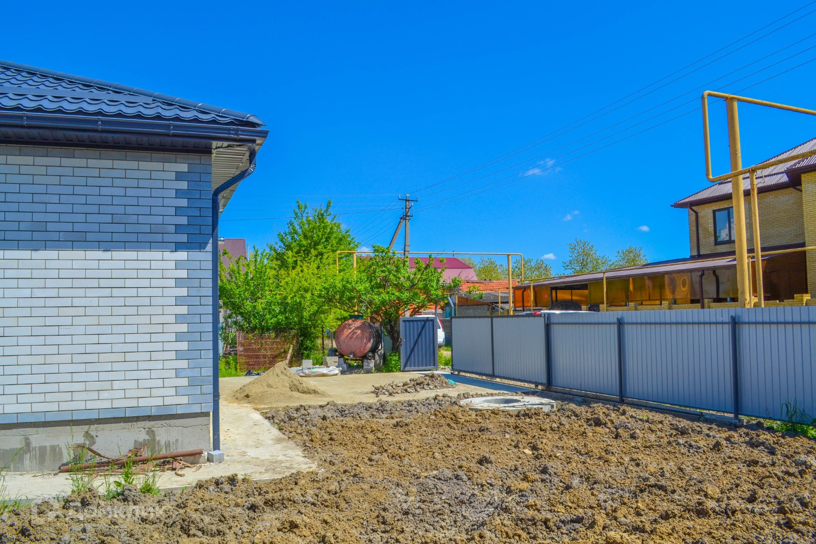 Двор забетонирован. Вода, канализация- септик, электричество-15 квт. Забор межевой по периметру из профнастила. Откатные ворота, калитка на замке. Предложение без риэлторских %.