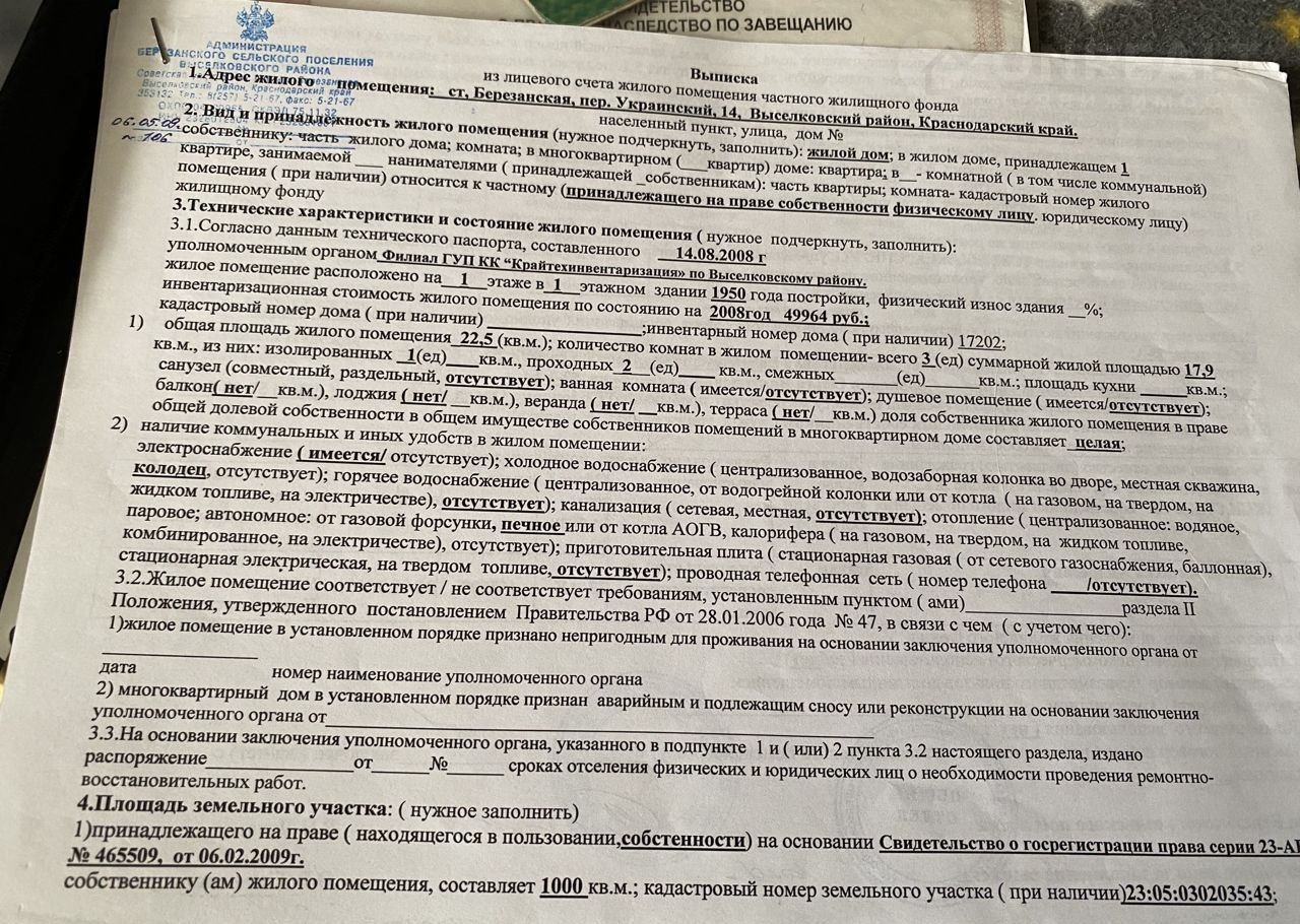 Продаётся дом в ст. Березанской Выселковского районо, Краснодарского края, по адресу пер. Украинский 14. Дом требует капитального ремонта. 1 сотка земли.