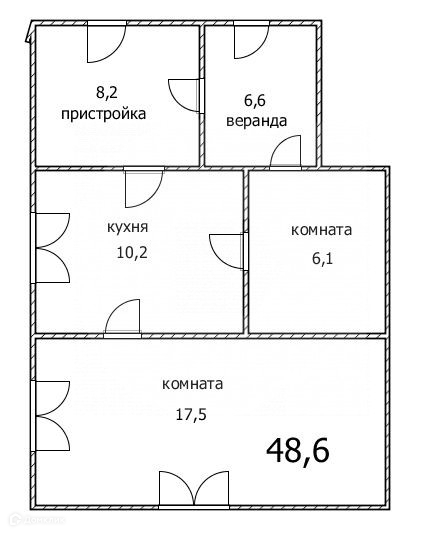 Общая площадь 48.6 м2