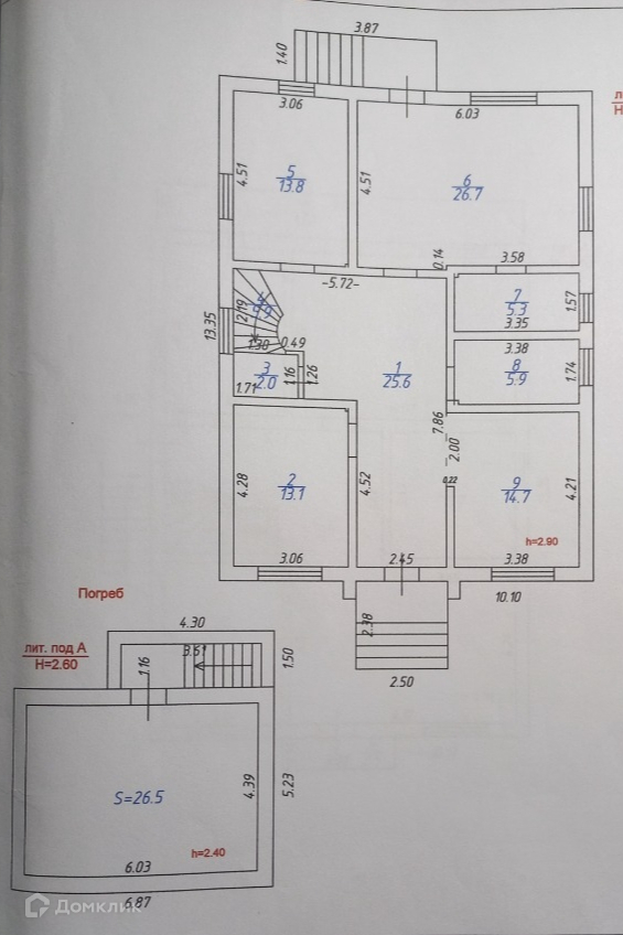 Имеется подвал mdash; 26.5 кв.м.