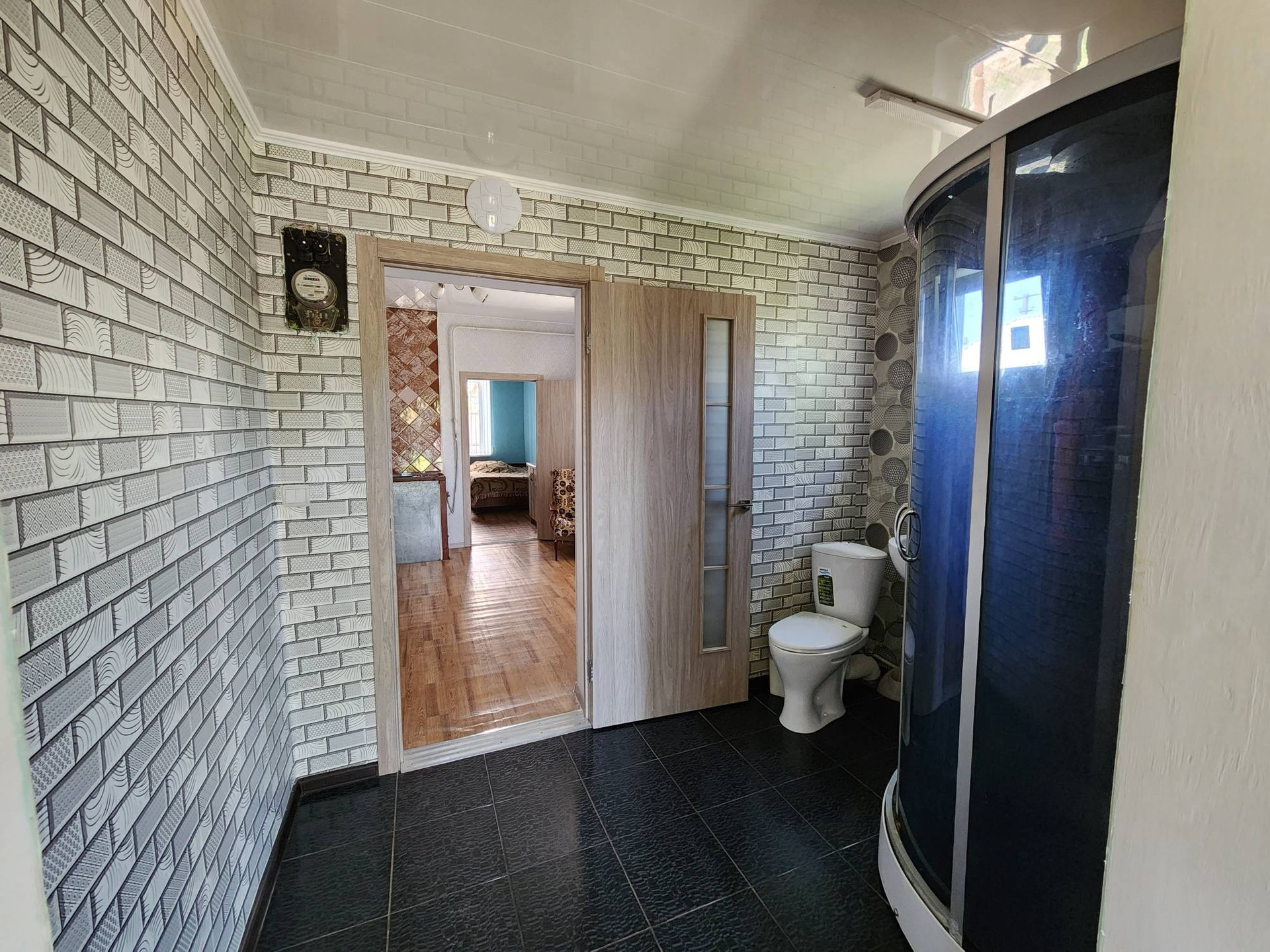 В доме 2 комнаты, кухня-прихожая,  ванная комната с душевой.