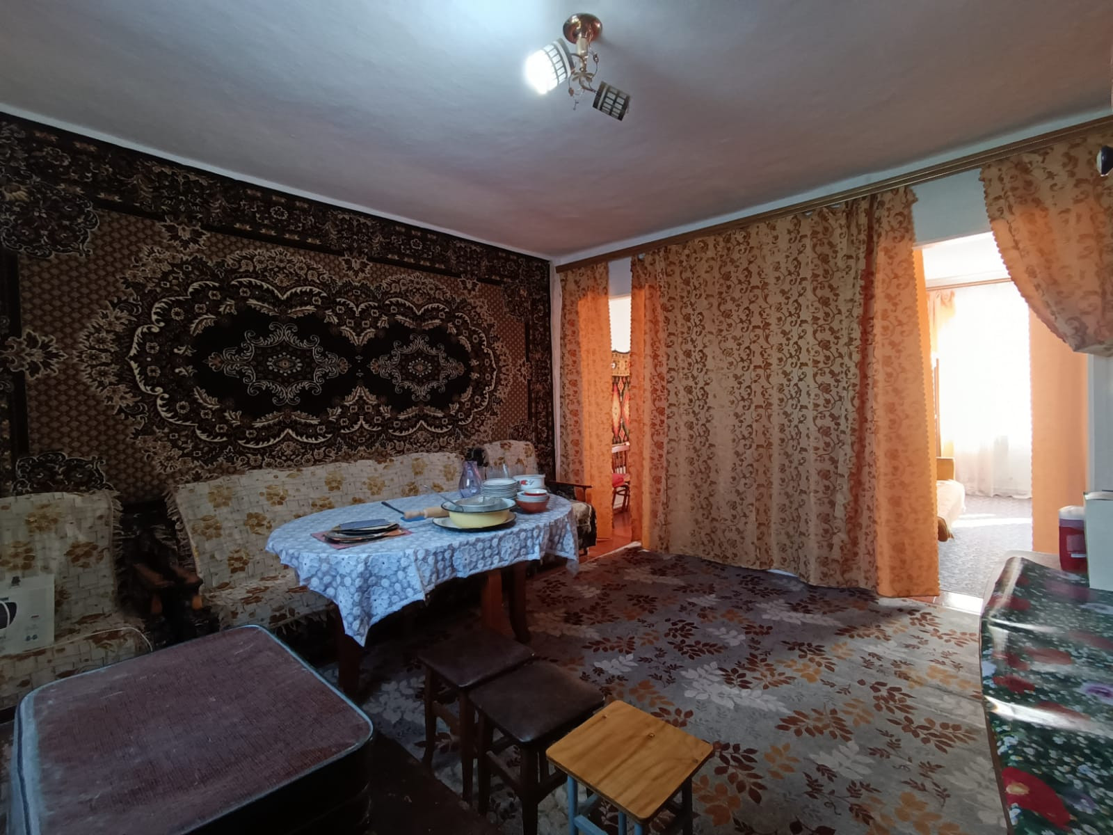 смежно-раздельного расположения, кухни и коридора. Стены и потолки побелены, полы - дощатые. На кухне стены и потолки побелены, рабочая зона обшита пластиковыми панелями, пол застелен линолеумом. В кухне установлена душевая