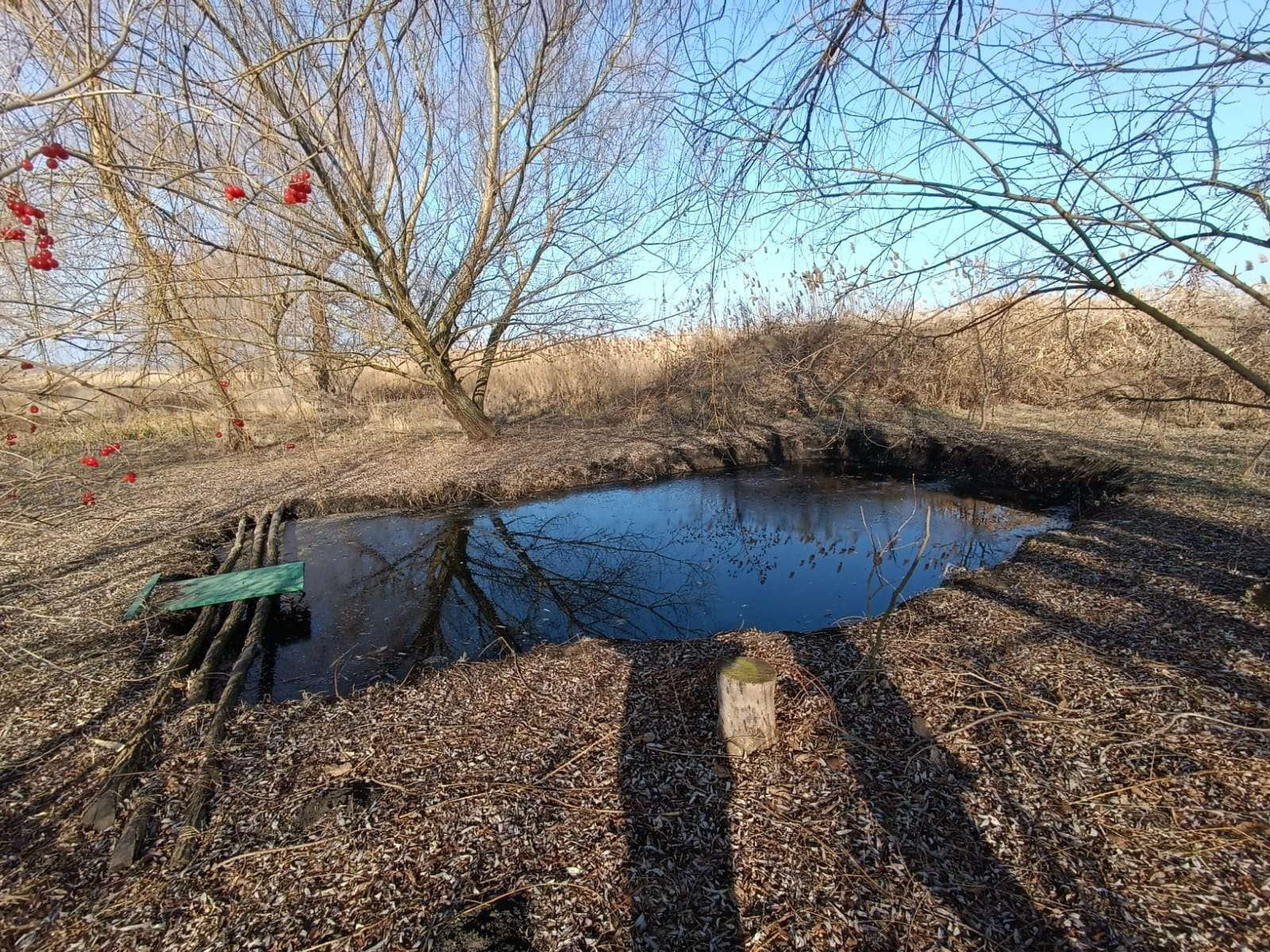 конце двора зарыбленная копанка 3*10м., глубиной около 3 метров.