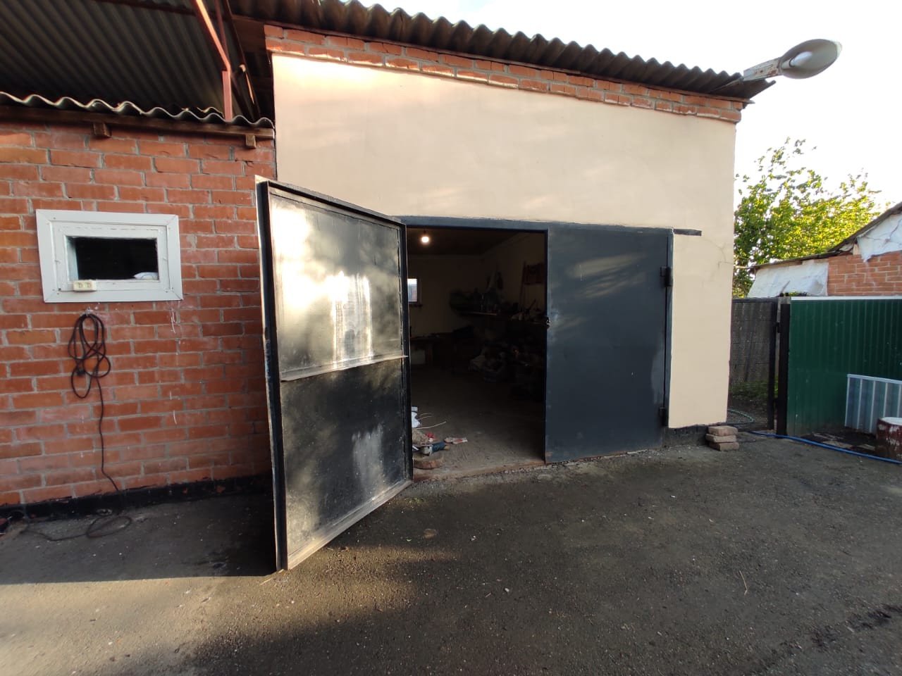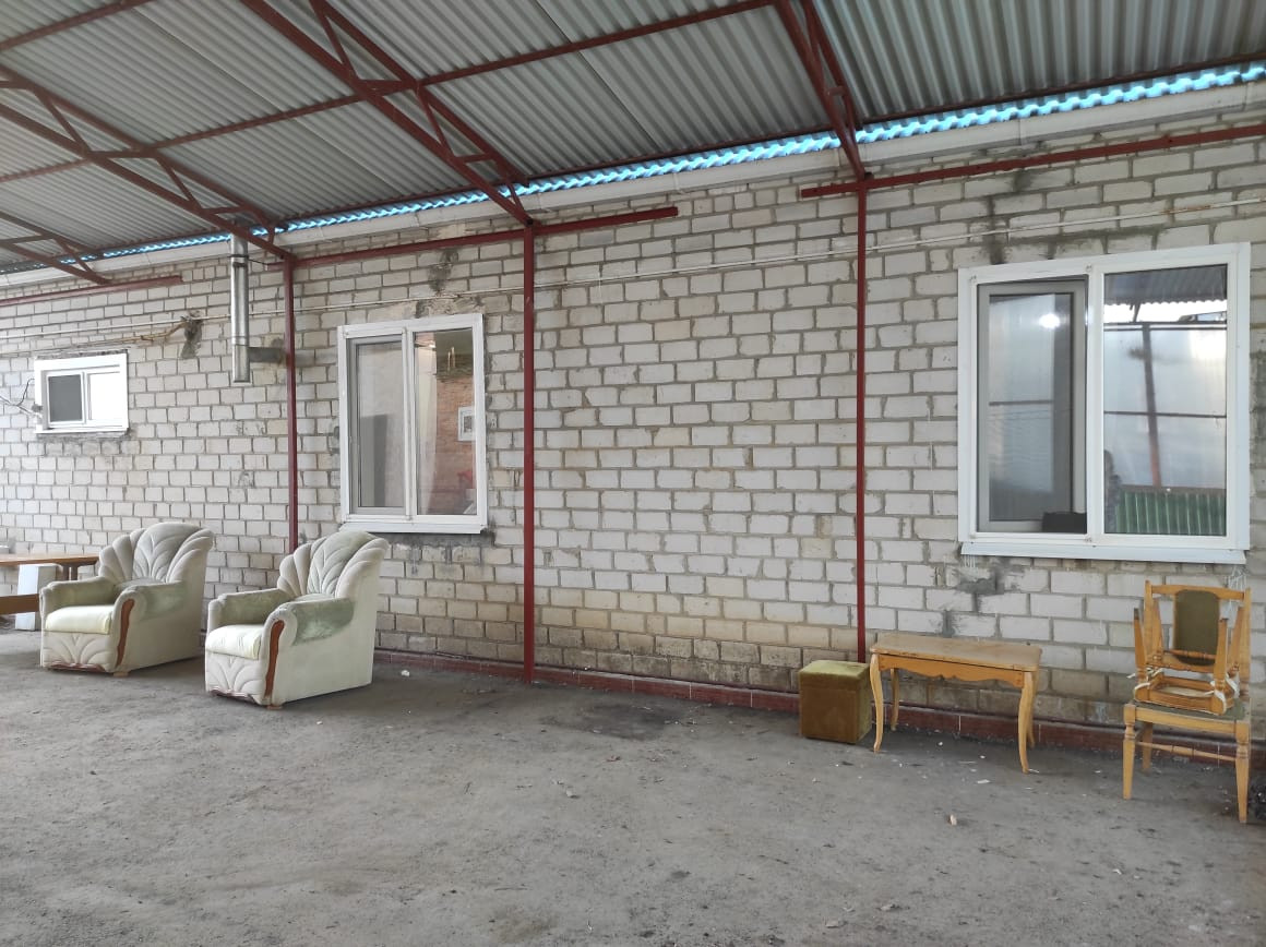 Во дворе асфальт. Все постройки 2011 года из кирпича. Гараж, летняя кухня, зернохранилище, курятник. Так же есть крольчатник, свинарник.