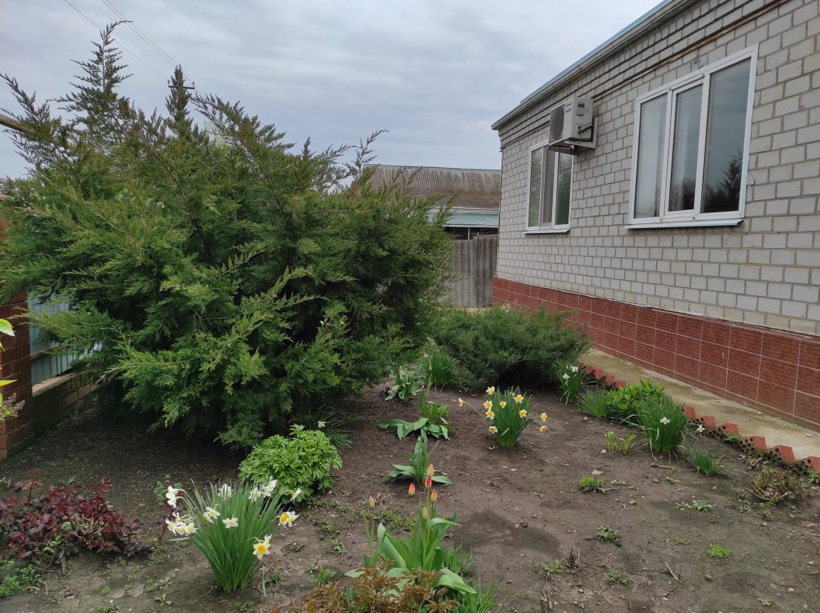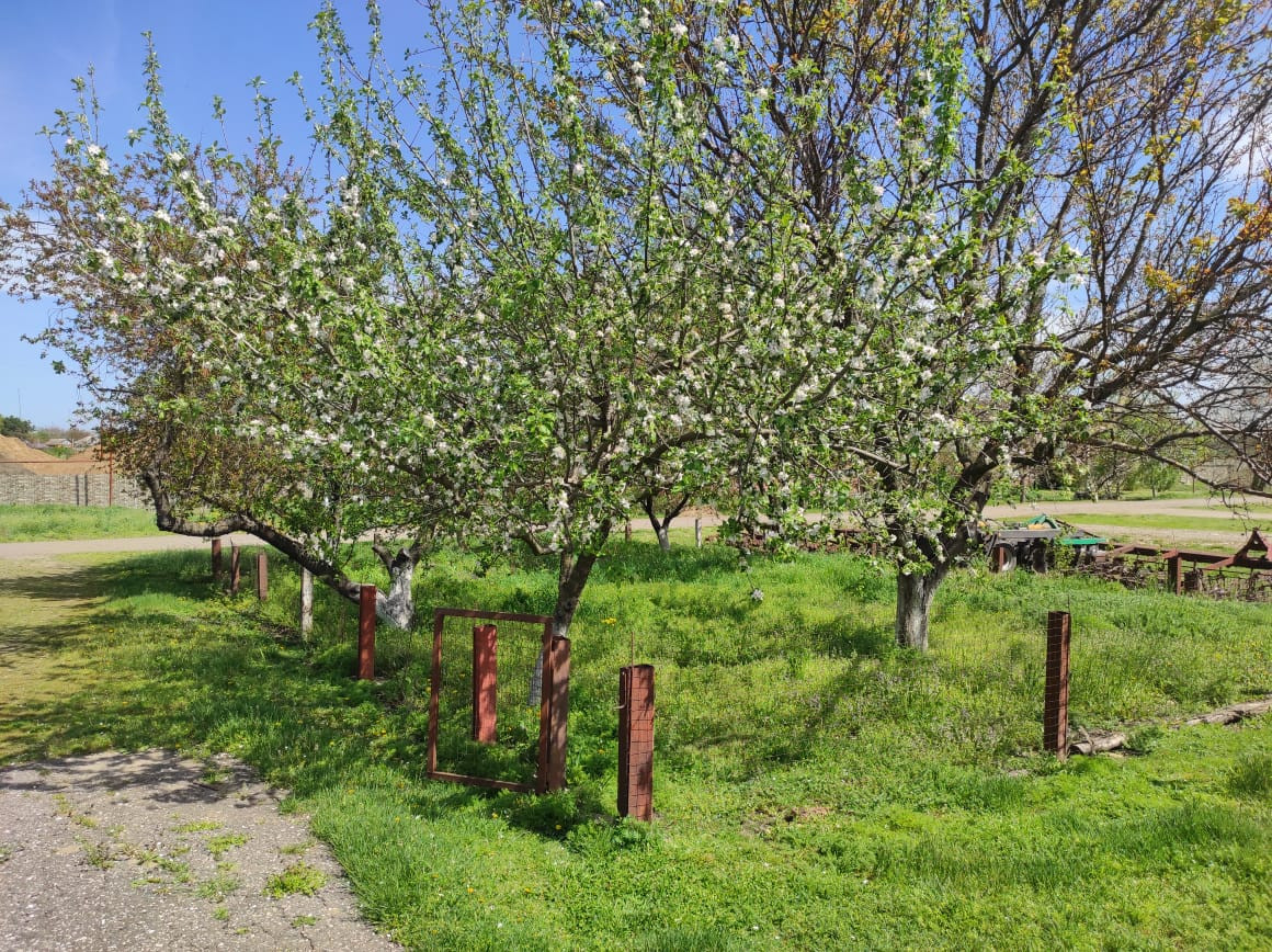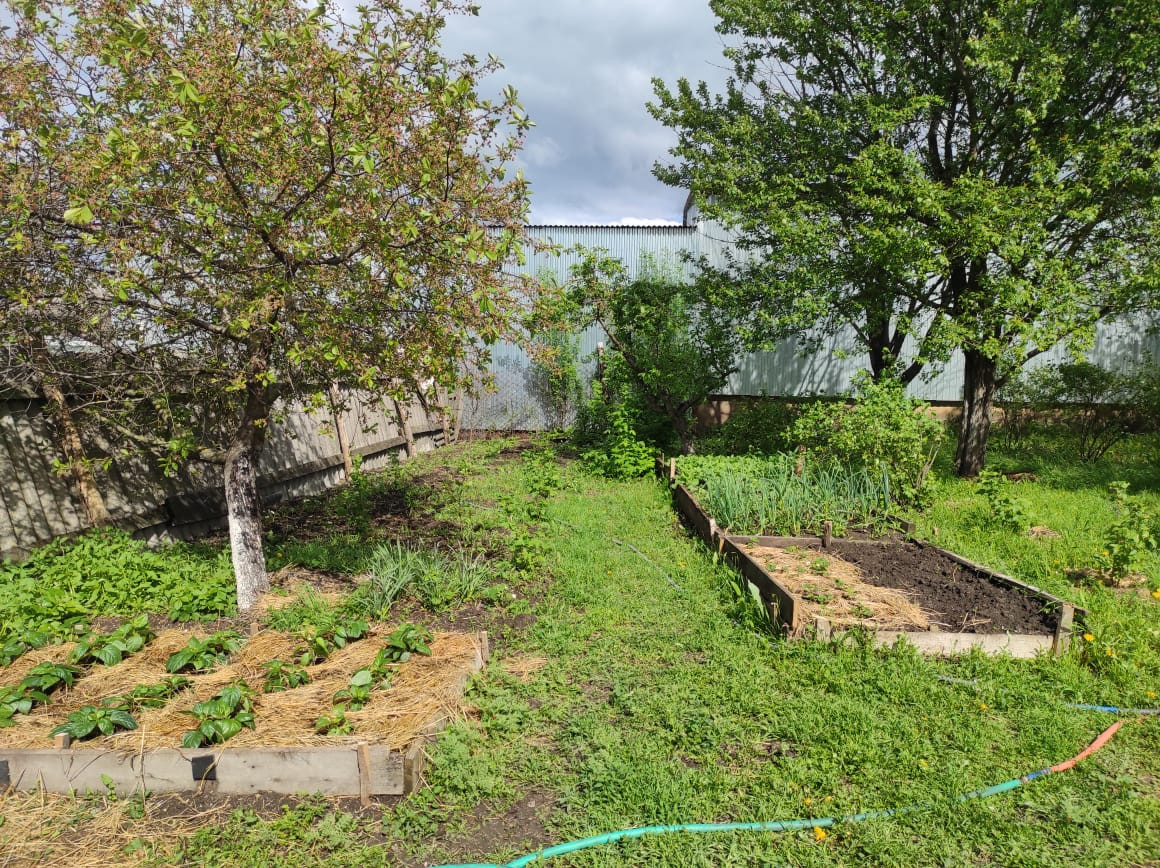 Огород 20 соток. Есть большой сад с фруктовыми деревьями. Яблони, вишни, черешни, абрикос, груши, слива, виноград, айва. Так же много клубники, малины, смородины.