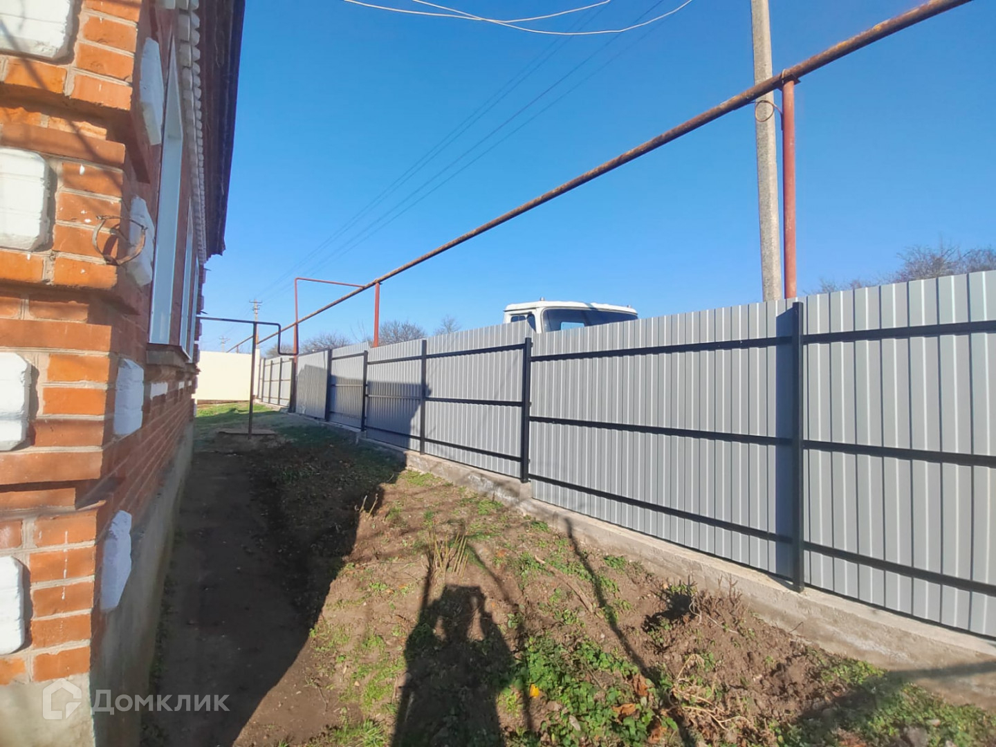 Двор огорожен по периметру, фасадный забор на ленточном фундаменте, проф.лист. качественные ворота, калитка.