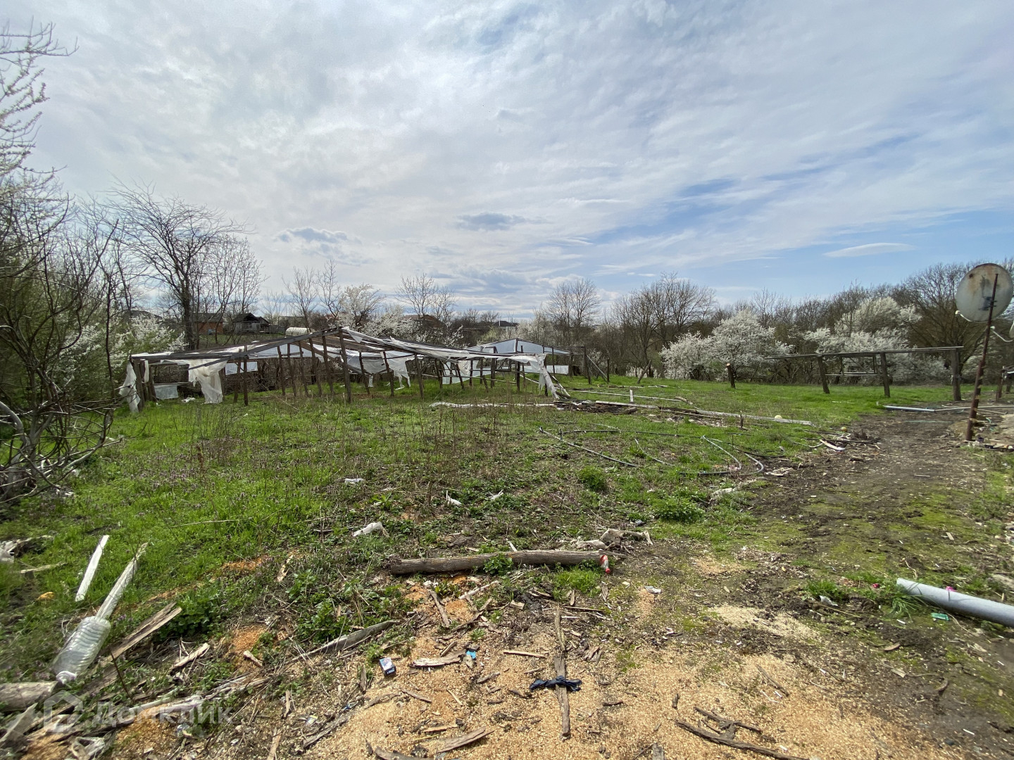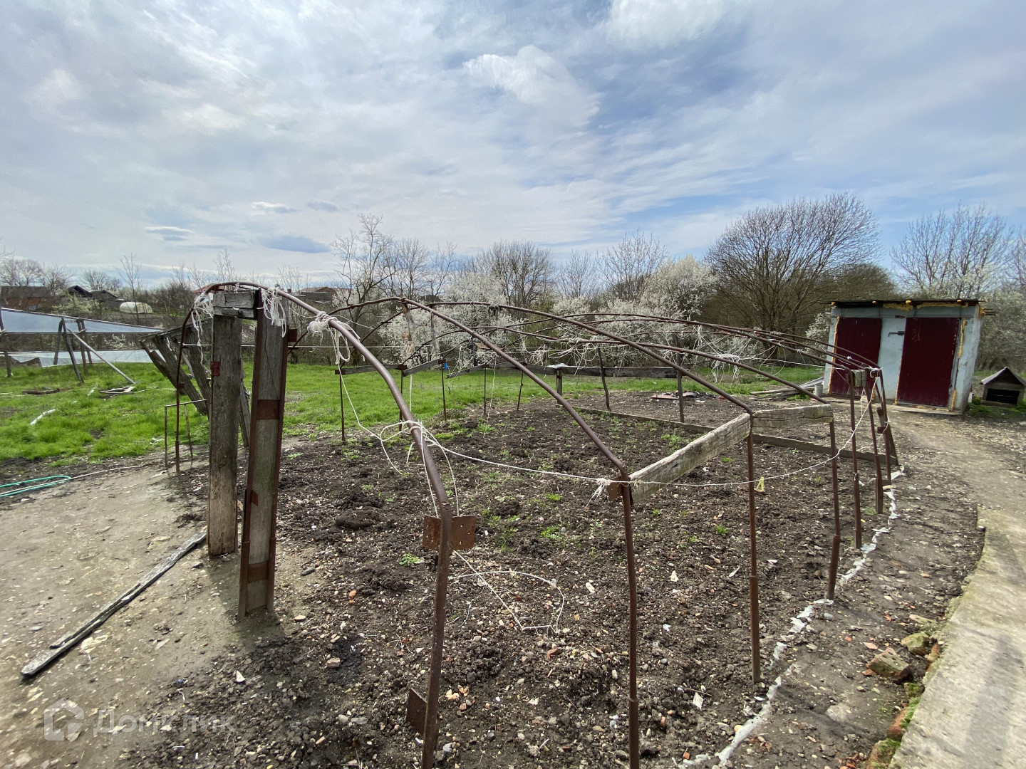 На участке хоз.постройки, теплица, большое количество плодово-ягодных деревьев и кустарников.