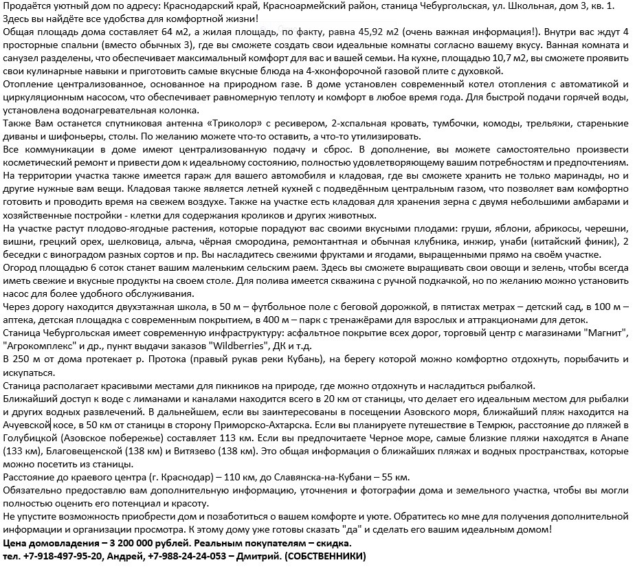 Обязательно предоставлю вам дополнительную информацию, уточнения и фотографии дома и земельного участка, чтобы вы могли полностью оценить его потенциал и красоту.