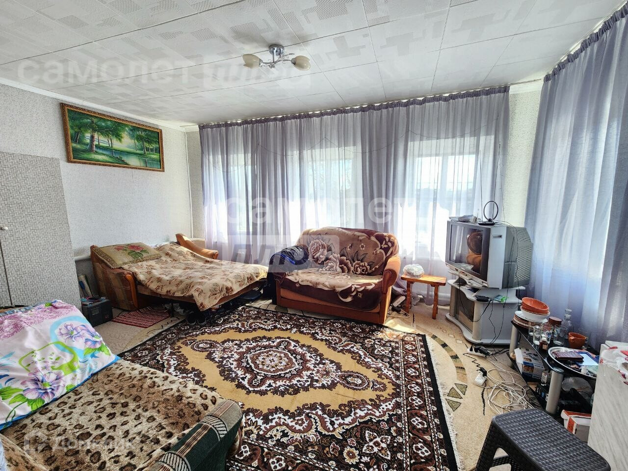 На крыше дома новый профнастил, окна все пластиковые.